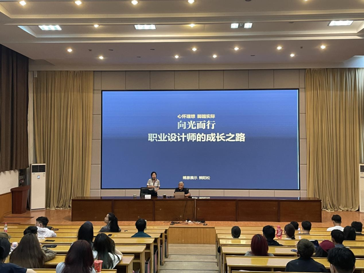 熊阳松以设计师的工作状态为切入点,分享了如何成为一名职业设计师。他表示,一名优秀的职业设计师要有独特的创意和视觉感受力、专业知识和技能、有效的沟通和解决问题的能力。他鼓励同学们要心怀理想,但同时也一定要脚踏实地;要明确自己的目标、对待工作要积极主动、学会抓住新机遇;要夯实专业基础,拓宽知识面和眼界,提高综合素质,为高质量的个人发展创造更大可能性。