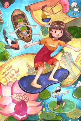 绘画作品用斑斓的色彩与百态的线条绘出潮涌亚运,弘扬体育精神,传递杭州、浙江的独特韵味和别样精彩,用手中的笔画出心中的亚运会。本次绘画活动,集中展示了设计青年阳光健康、积极向上的精神风貌和喜迎盛会、祝福亚运的良好愿景,畅想亚运盛事,共筑体育强国梦。