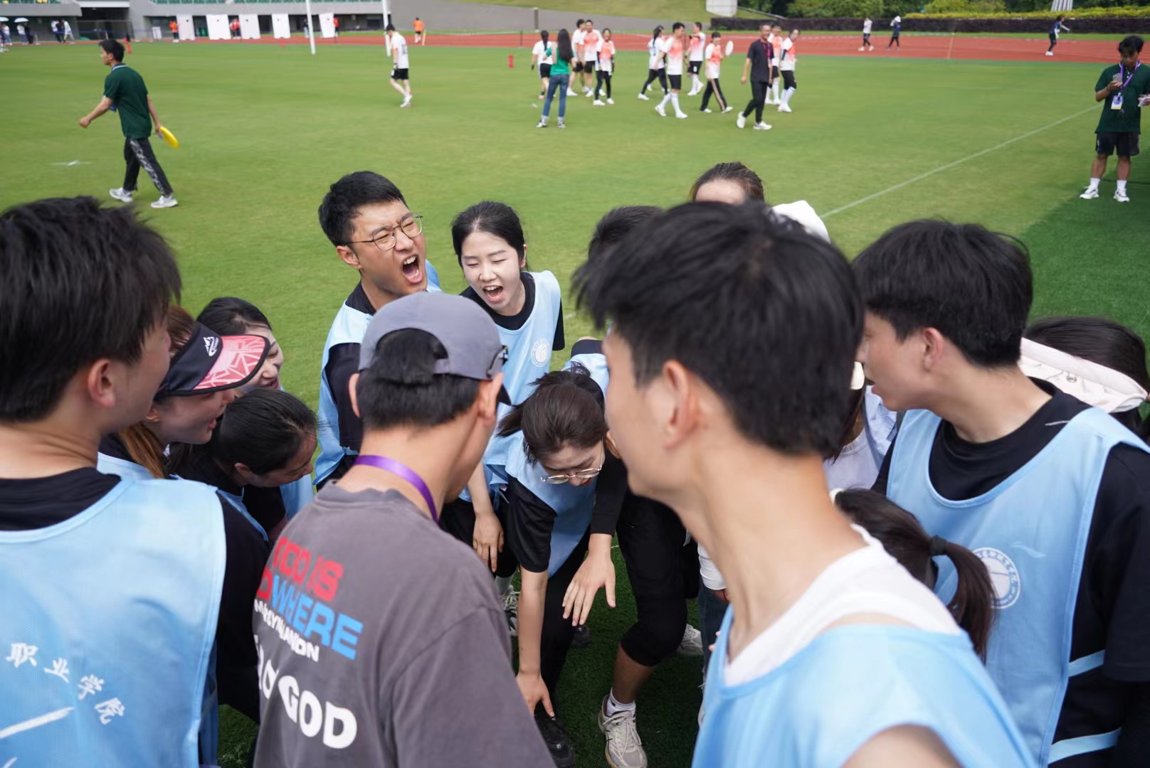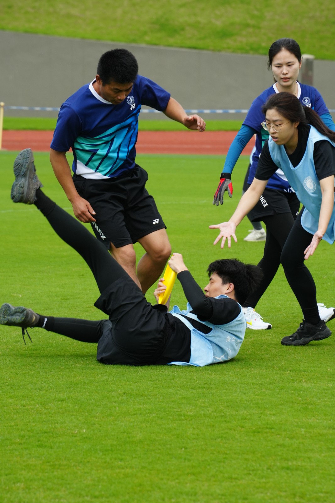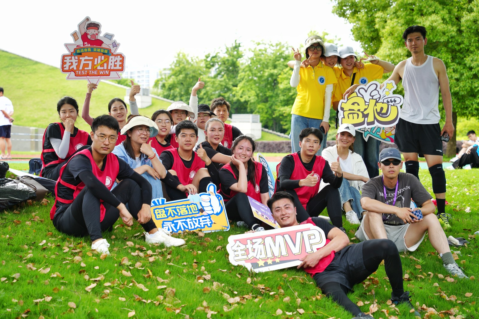 面对我校运动场馆升级改造没有训练场地的困境,学工部积极练习通过外租场地训练、向兄弟院校借场地等方式积极备战,大家都倍感珍惜每一次练习,争分夺秒提升效率。辅导员们在繁重的工作之余进行了为期一个月的训练,经历了大大小小的伤痛,甚至骨裂,但他们从未想过放弃,继续以昂扬斗志飞奔在赛场上,用飞盘画出一道道完美的弧线。