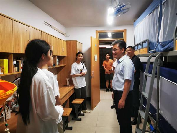 薛亮一行首先走访了校内学生公寓、立志园和东冠校区学生寝室。他与同学们亲切交谈,关心学生学习生活情况、假期安排等,提醒同学们注意假期回家及返校途中安全,保护好自己的人身及财产安全。