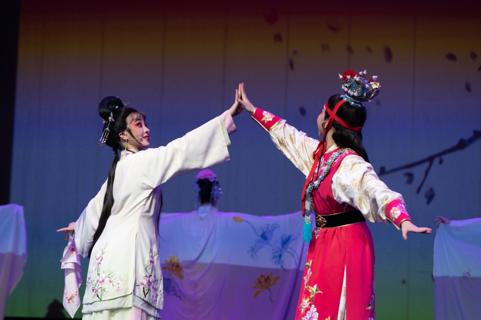 专业第一课在戏曲舞蹈《百花争妍》中缓缓拉幕,寓意梨园新声花香满园,绘就了一幅春意盎然、繁花似锦、欣欣向荣的美丽画卷。