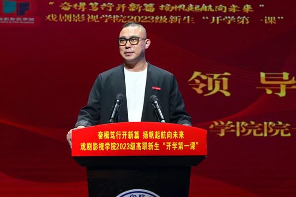 10月13日晚,戏剧影视学院在浙江艺术实验剧场举行2023级高职新生“开学第一课”。戏剧影视学院院长那刚、党总支书记许瑛、副院长徐旭恒出席,校友代表、各专业教研室主任、行政教辅老师、新生班班主任和全体2023级新生参加。活动由徐旭恒主持。