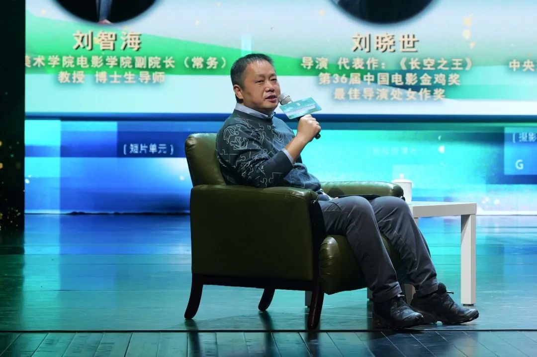圆桌论坛由中国美术学院电影学院常务副院长、教授、博士生导师,中国电影家协会编剧教育委员会副会长,浙江省电影家协会主席团委员刘智海主持。作为今天的主持人,他以风趣的语言开场,向在场嘉宾提出了三个问题:电影导演的成长之路是怎么样的?每个导演如何建构自己的电影美学?未来有什么电影规划?