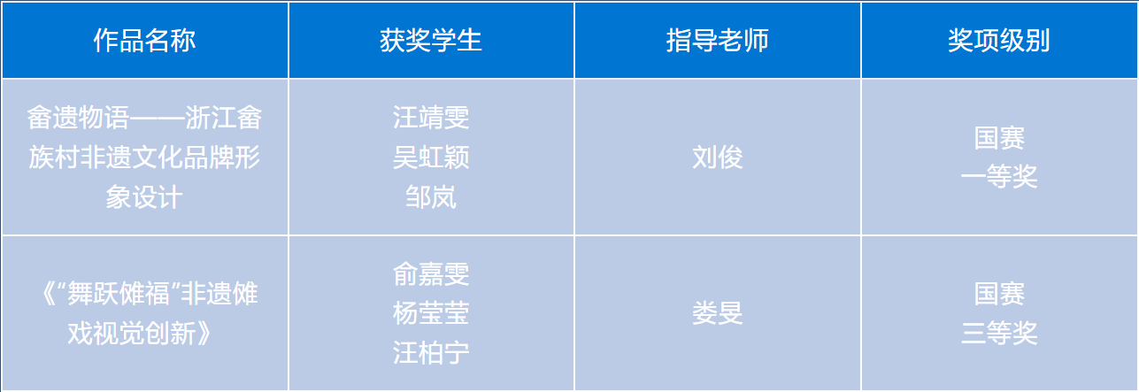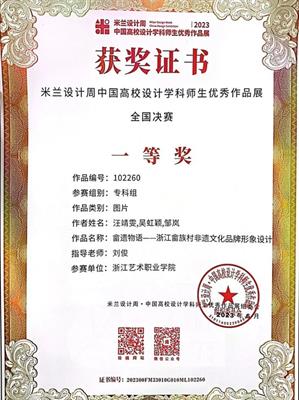为提高学生运用知识解决实际问题的能力,积极鼓励学生参加各类专业竞赛,培养具有创新精神和实践能力的高素质技术技能人才。近日,由设计学院各专业教师指导的学生作品在2023“米兰设计周——中国高校设计学科师生优秀作品展”中喜获佳绩。经过校内选拔、浙江赛区选拔,作品获得国赛一等奖1项,三等奖1项;浙江赛区获省一等奖1项、二等奖4项、三等奖5项的好成绩。
