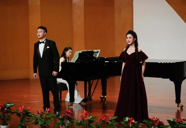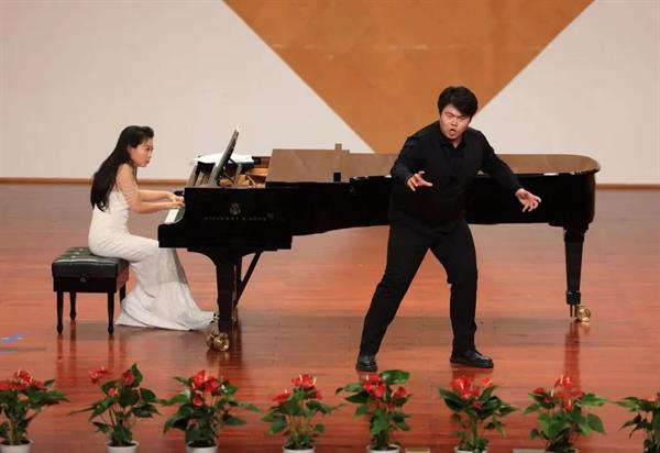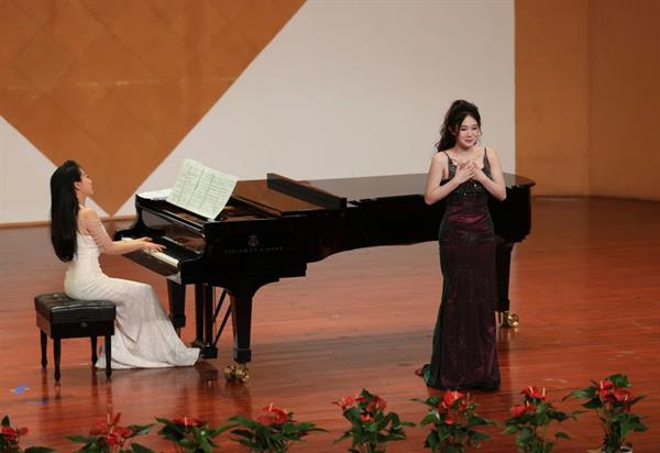 《The Phantom of the opera》是一首观众们耳熟能详的作品。随着前奏的响起,第二位特邀嘉宾,来自浙江艺术职业学院教师蔡敏登场,她与张靖爽完美演出了这一曲经典名作,赢得了观众钦佩的目光和热烈的掌声。
