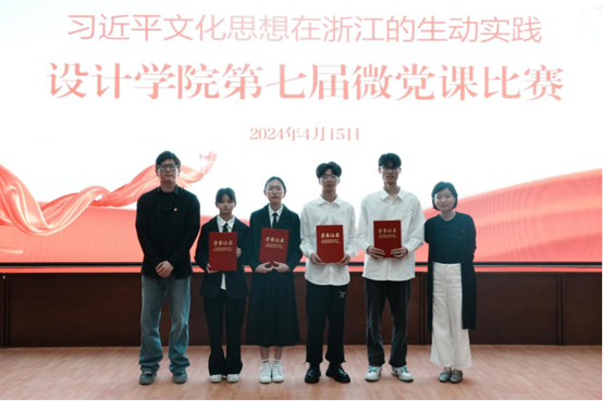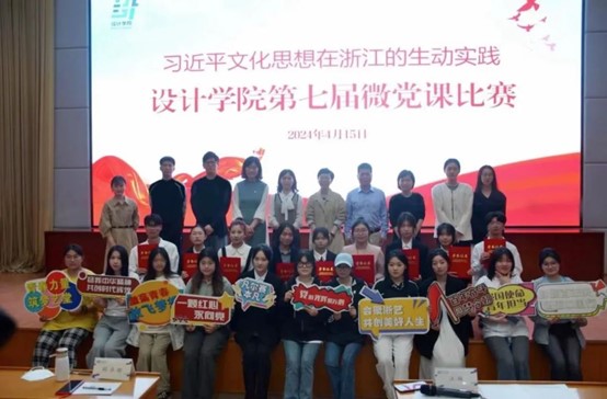 为深入学习贯彻习近平文化思想,丰富党课教育内容,创新党课教育形式,深化学生对习近平文化思想在浙江生动实践的认识,续写新时代浙江文化繁荣兴盛的新篇章,4月15日,设计学院“习近平文化思想在浙江的生动实践”第七届微党课比赛在学校图信报告厅举行。马克思主义学院副院长胡卓群,设计学院党总支书记汪琳,党总支副书记汪仕龙,副院长何佳玮,党总支委员、教工第二党支部书记贾娜娜,学生党支部书记龚林峰出席并担任评委。辅导员、学生党员、第43期党校学员、“正青春”青年理论学习小组成员、青年团员现场观摩学习。