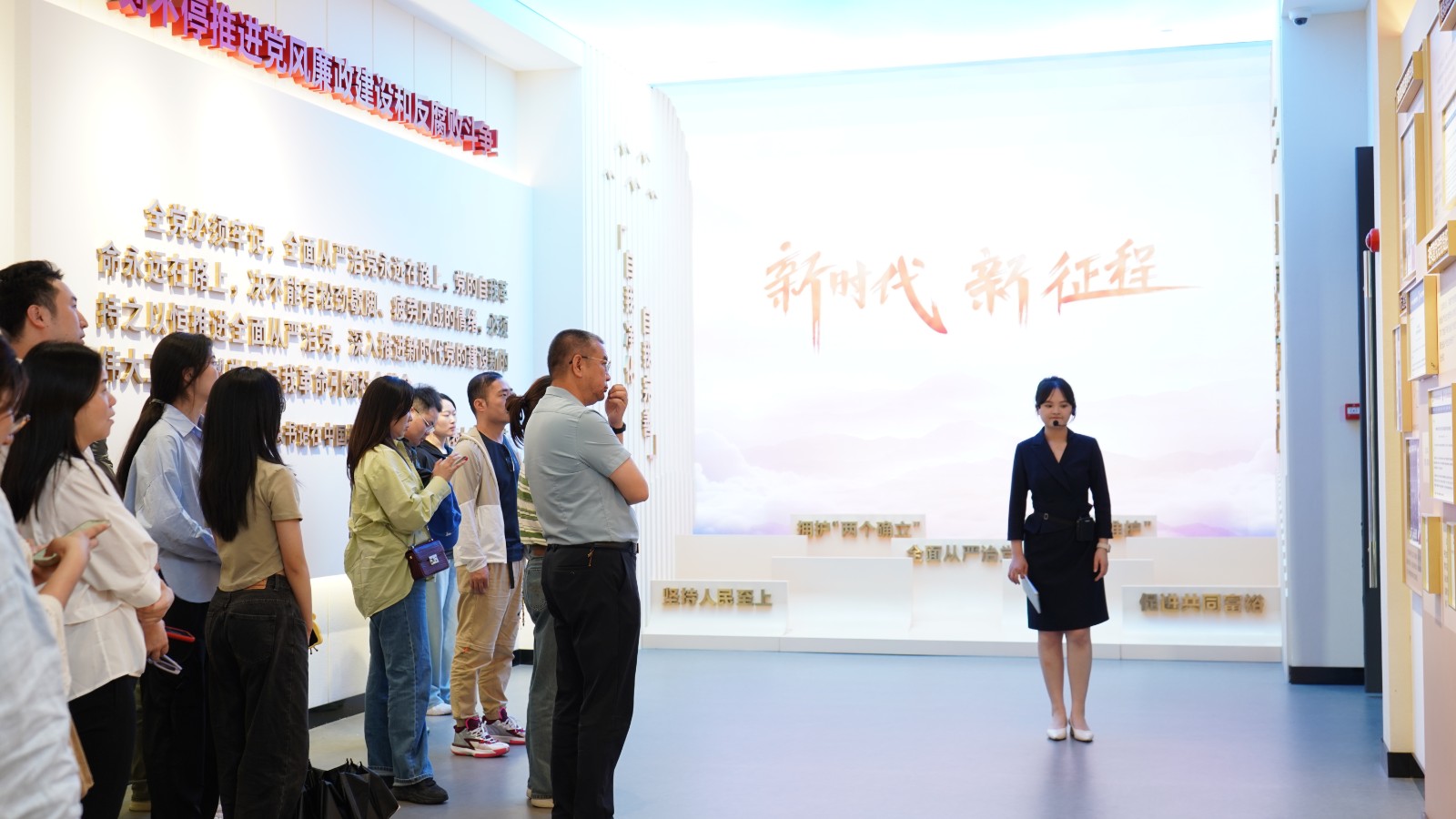 全体党员和发展对象在讲解员的引导下参观了衢州市法纪教育基地,通过展厅内陈列的丰富资料,回顾了中国共产党百年来不断深化从严治党、强化党风廉政建设、持续推进反腐败斗争的历程和成就。通过真实的案例和沉浸式的互动体验,让参观者身临其境地感受到了背离初心、抛弃理想信念的惨痛代价。一个个鲜活详实案例如明镜高悬,警示着每一位党员需始终铭记党的纪律和原则,坚守底线。