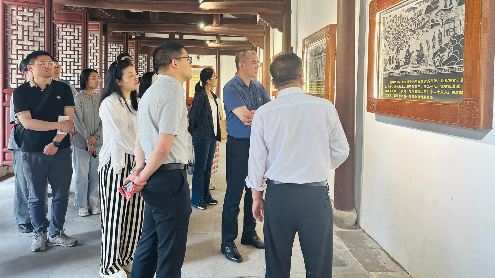 翌日,大家先后参观了孔氏南宗家庙和赵抃祠,在感受浓郁儒家文化气息的同时,也感悟着“礼”“乐”“射”“御”“书”“数”的深刻内涵。衢州孔庙历经三迁三建,经历战争得以保存,不仅仅是国家级文物保护单位,更是爱国主义教育基地和廉政文化教育基地。在讲解员的讲述中,孔氏后裔“扈跸难渡”“孔洙让爵”等一个个鲜活的故事,让所有人记住了一代代孔氏南宗后人是如何筚路蓝缕、衍圣弘道的。