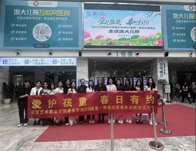 由班主任窦瑾、辅导员占悠雅带队,20键盘一贯师生走进浙大附属儿童医院,开展以“爱护孩童,春日有约”为主题的公益音乐会,20键盘一贯班精心挑选系列舒缓轻快的曲目进行钢琴演奏。