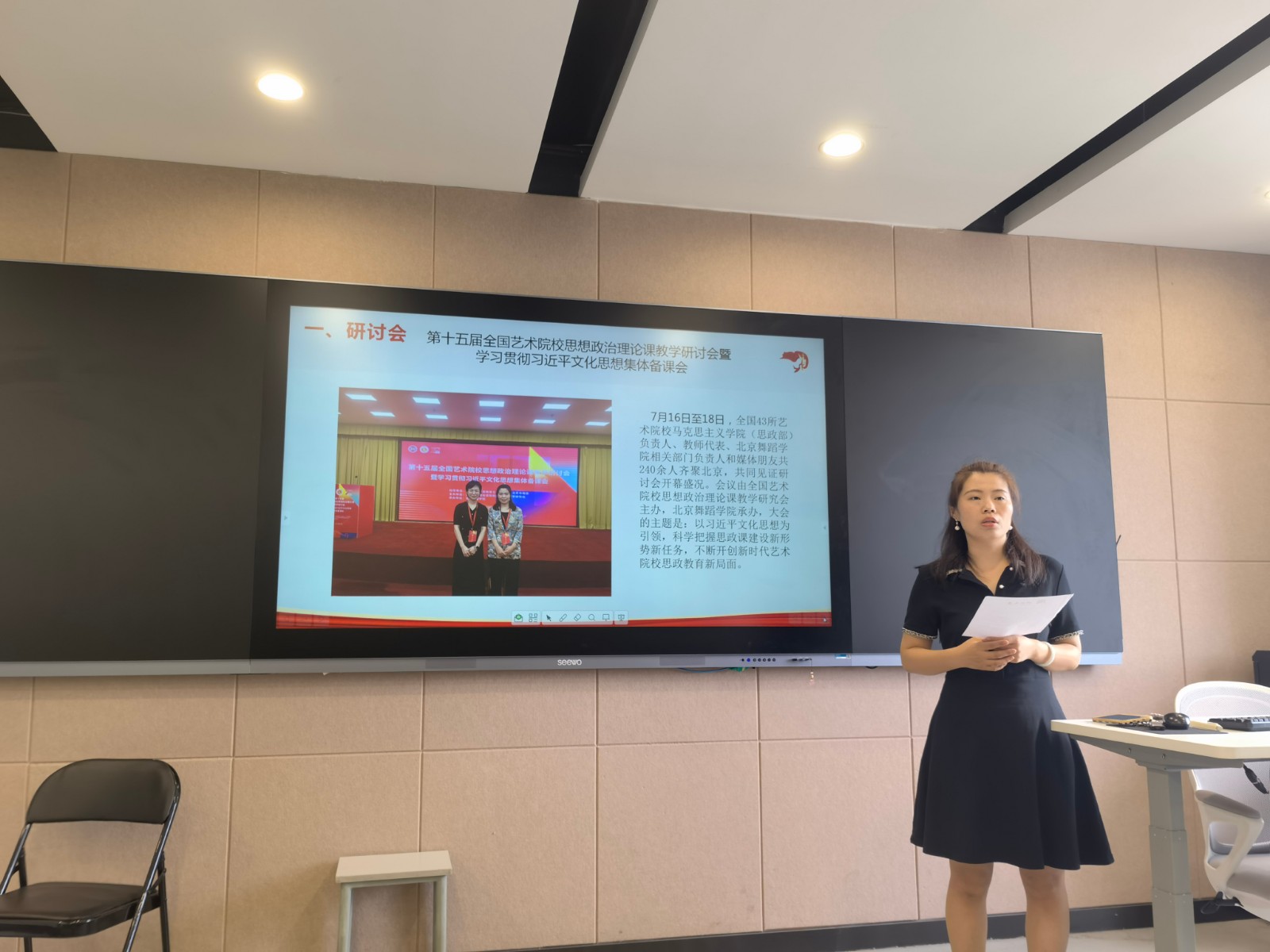 为贯彻落实习近平总书记对学校思政课建设的重要指示和新时代学校思政课建设推进会精神,守正创新推动思政课建设内涵式发展,进一步提升全体思政教师的教育教学能力,9月19日,马克思主义学院在8707教室举办了暑期培训分享交流会,共享思政课教师暑期学习的经验成果,全体马院教师参加。