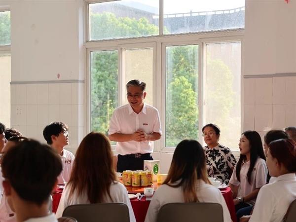 贺东辉鼓励学生们要充分利用这次学习机会,将所学知识和技能运用到未来的工作中,提升专业素养,为新疆特别是阿克苏地区文化事业发展注入新的活力。校领导对同学们的在校生活十分关心,谈话中充满了对同学们的期望与关怀,他们激励同学们要加强师生交流,提高文化修养,为阿克苏的基层文化建设贡献青春力量。餐叙过程充满欢声笑语,在和谐愉快的沟通中,不知不觉间拉进了师生距离,为帮助同学们更快适应浙艺生活打下良好的基础。