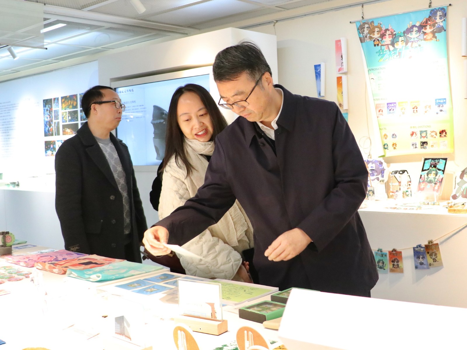 与会嘉宾先参观了“古艺新续”——手工艺校企合作成果展,手工艺学院党总支书记钟黎介绍了展览区域与学生作品,充分展现了学校深厚的文化底蕴与独特的教育资源。此次展示聚焦学校在传统文化传承、现代教育创新实践等方面的卓越成就,为即将揭牌的首批中国游学基地增添了丰富的内涵与背景铺垫。