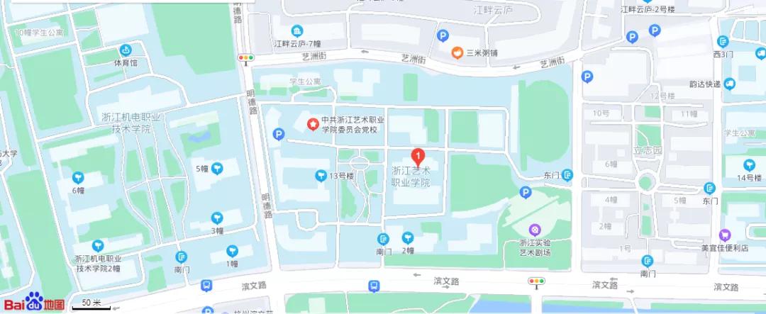 1.地址:杭州市滨江区滨文路518号浙江艺术职业学院