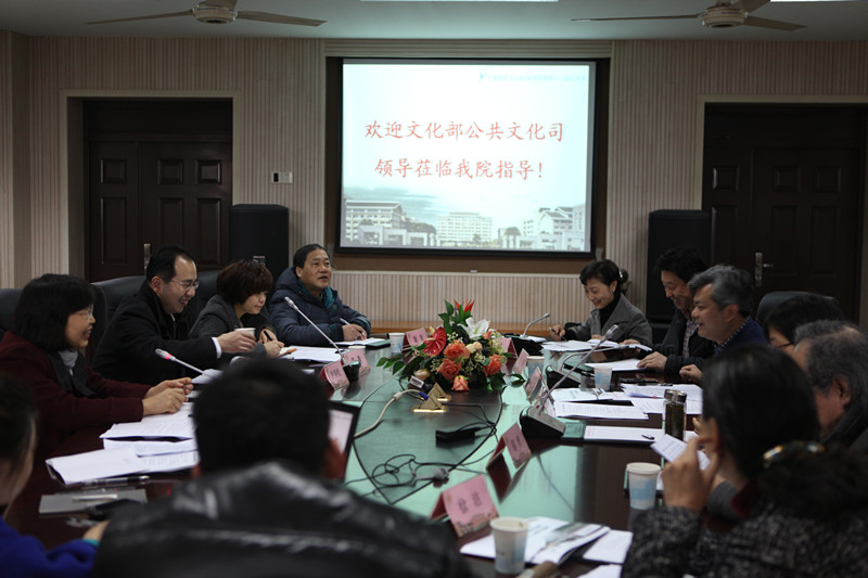 2月27日,文化部公共文化司副司长周广莲来浙江艺术职业学院调研全国基层文化队伍培训基地情况。浙江省文化厅副厅长柳河,浙江省文化厅公共文化处处长任群,浙江图书馆党委副书记徐洁,浙江省文化馆副馆长邬勇,浙艺院党委副书记、副院长朱海闵,党委副书记黄杭娟,继续教育学院院长谢青等参加座谈。