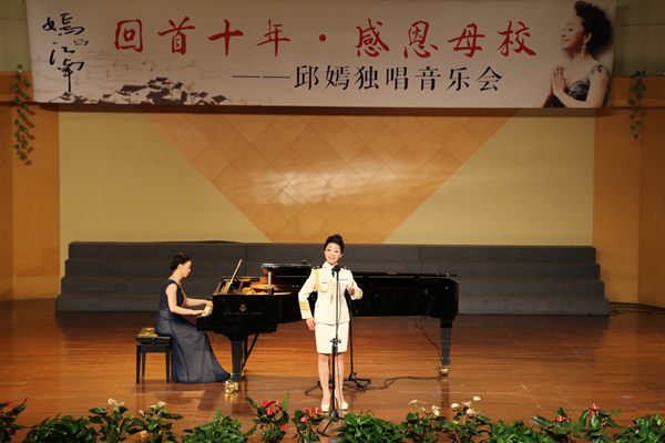 5月26日晚,浙江艺术职业学院校友邱嫣荣归母校,在音乐厅举办“嫣与江南——回首十年感恩母校”邱嫣独唱音乐会,唱响从艺之歌、感恩之歌。中国人民解放军海军军乐团副团长兼艺术总监王慧星、原省音协主席晓其、我院领导和老领导以及音乐界专家、音乐系师生等到场聆听音乐会。国家一级演员、浙江省声乐辅导团副团长胡素银主持音乐会。