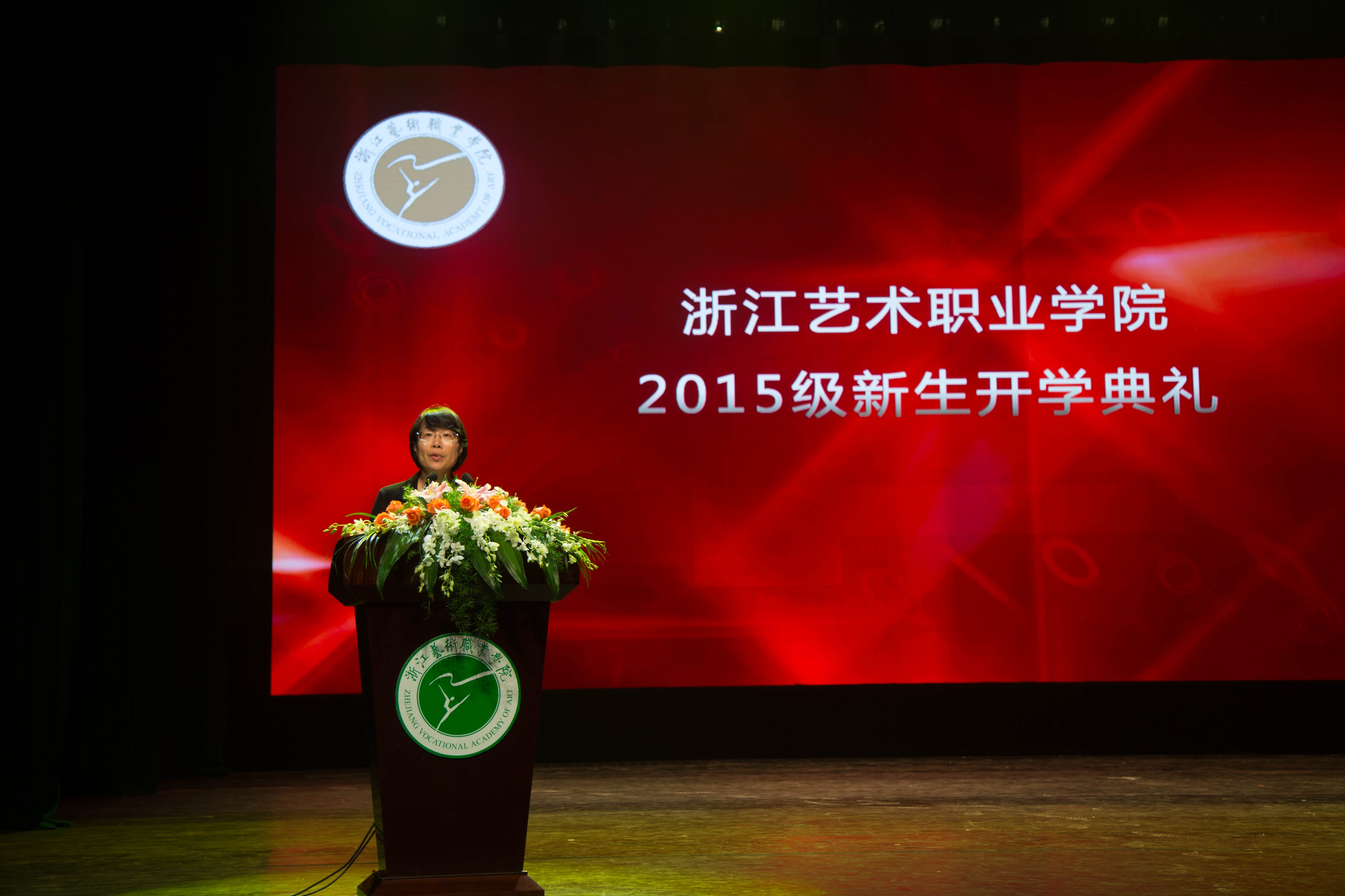 9月14日晚,浙江艺术职业学院2015级新生开学典礼在实验剧场隆重举行。院党委书记、副院长朱海闵,党委副书记黄杭娟,党委委员、副院长章轲,党委委员、副院长沈恒,党委委员、纪委书记夏开堂,各职能部门和各教学系部负责人出席仪式。1314名新生参加典礼。