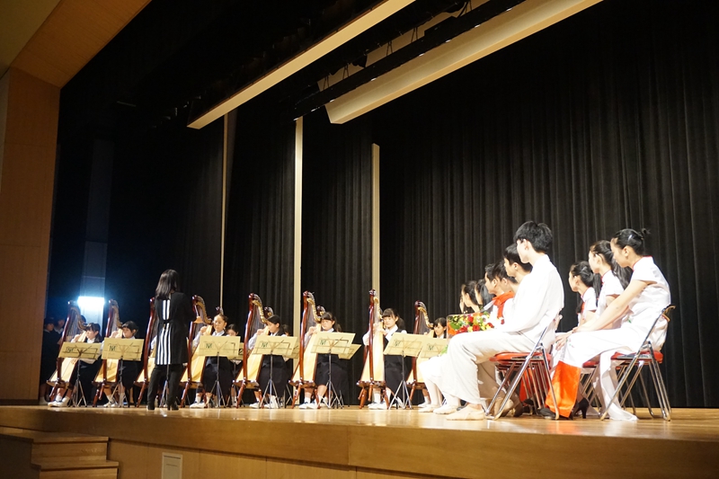 除了演出交流,艺术团还与各地中小学校校长进行多方交流。在交流中,马向东介绍了浙艺院的办学历史和艺术明星,介绍了浙江龙井茶和歌曲《采茶舞曲》及其作者周大风,并现场哼唱,引起了他们的兴趣;多所学校则介绍了他们的足球文化和培养出的日本国家队主力。在静冈县友协的欢迎宴会上,有心的他们还为艺术团学生周佳宇庆祝生日,艺术团师生则现场表演独奏、舞蹈和独唱,尤其是艺术团老师曹晨霄表演的舞蹈和刘琼的独唱,获得热情掌声。日本琴静流大正琴·文化筝宗家冈田丰礼女士格外垂青艺术团年轻的学生们,不仅组织琴社与艺术团合演,观看专场公演,还宴请艺术团,并在艺术团离别时率团前来宾馆送行。冈田丰礼女士高度评价艺术团学生们的表演,说今天有这样的艺术表现,今后一定会成为闪耀的艺术明星。