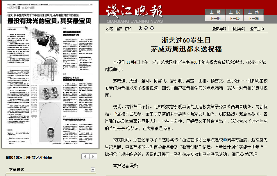 媒体关注浙艺建校60周年校庆(有更新)