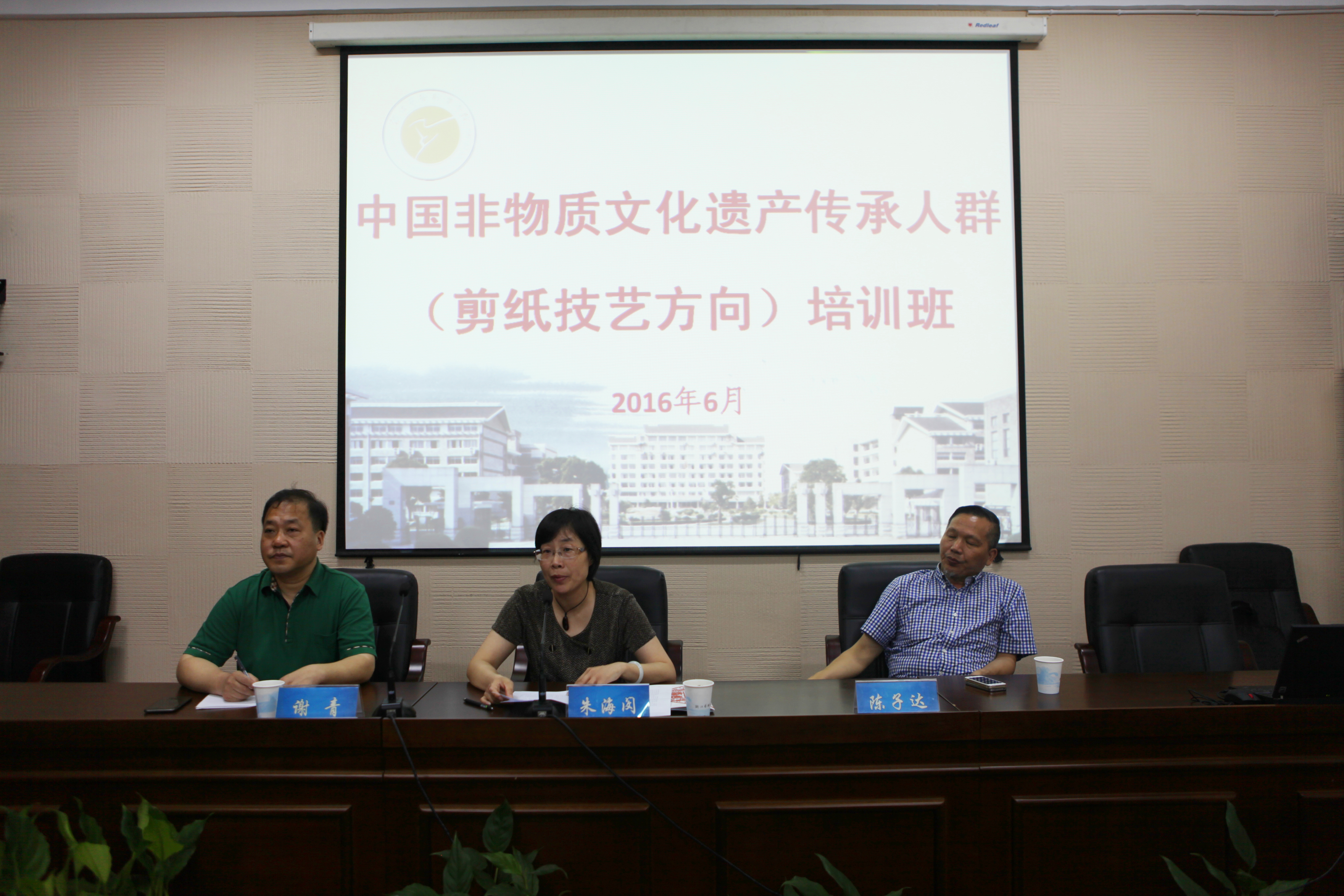 浙江艺术职业学院党委书记朱海闵、文化管理系副主任(主持工作)陈子达出席开班仪式,继续教育学院院长谢青主持。来自我省的50名剪纸类非遗项目传承者参加了开班仪式。