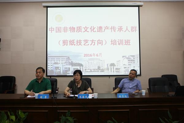 7月1日上午,由文化部、教育部主办,浙江艺术职业学院承办的中国非物质文化遗产传承人群培训班我省第二期(剪纸技艺方向)培训举行开班仪式。培训将持续至7月30日。