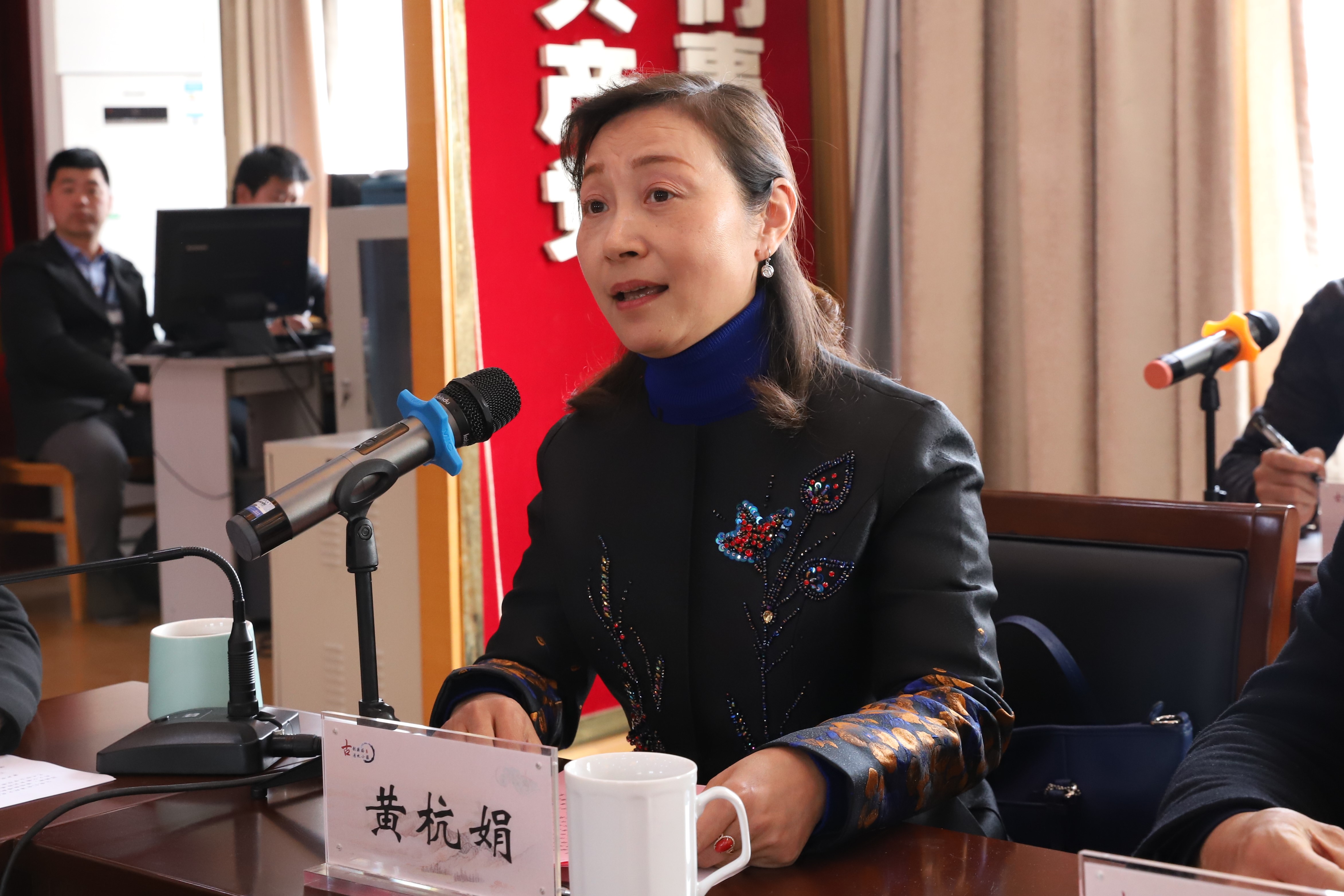 黄杭娟做主旨演讲,她表示浙江艺术职业学院与楼塔镇的校地合作在今天(3月9日)拉开了新时代的序幕,在过去的几年里,浙艺和细十番协会进行了多次细致的合作交流,她相信通过正式签约,以后的合作将会更为广泛,更为丰富,更有成效。她希望双方能更好地发挥优势资源和特色,充分挖掘古韵楼塔的文化基因和清水小镇的文化历史渊源以及品牌价值,在优势互补的基础上,深化产教融合,在人才培养、资源共享、艺术创作、公共文化服务、文化产业发展等多方面开展合作。