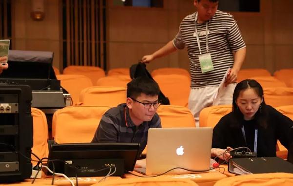 19日早上8点多,所有工作人员都来到直播现场进行最后测试。除了老师以外,影视技术系部分专业学生也承担了此次任务,摄影摄像专业与编导专业进行摄像,多媒体专业负责操作导播台和线路管理。