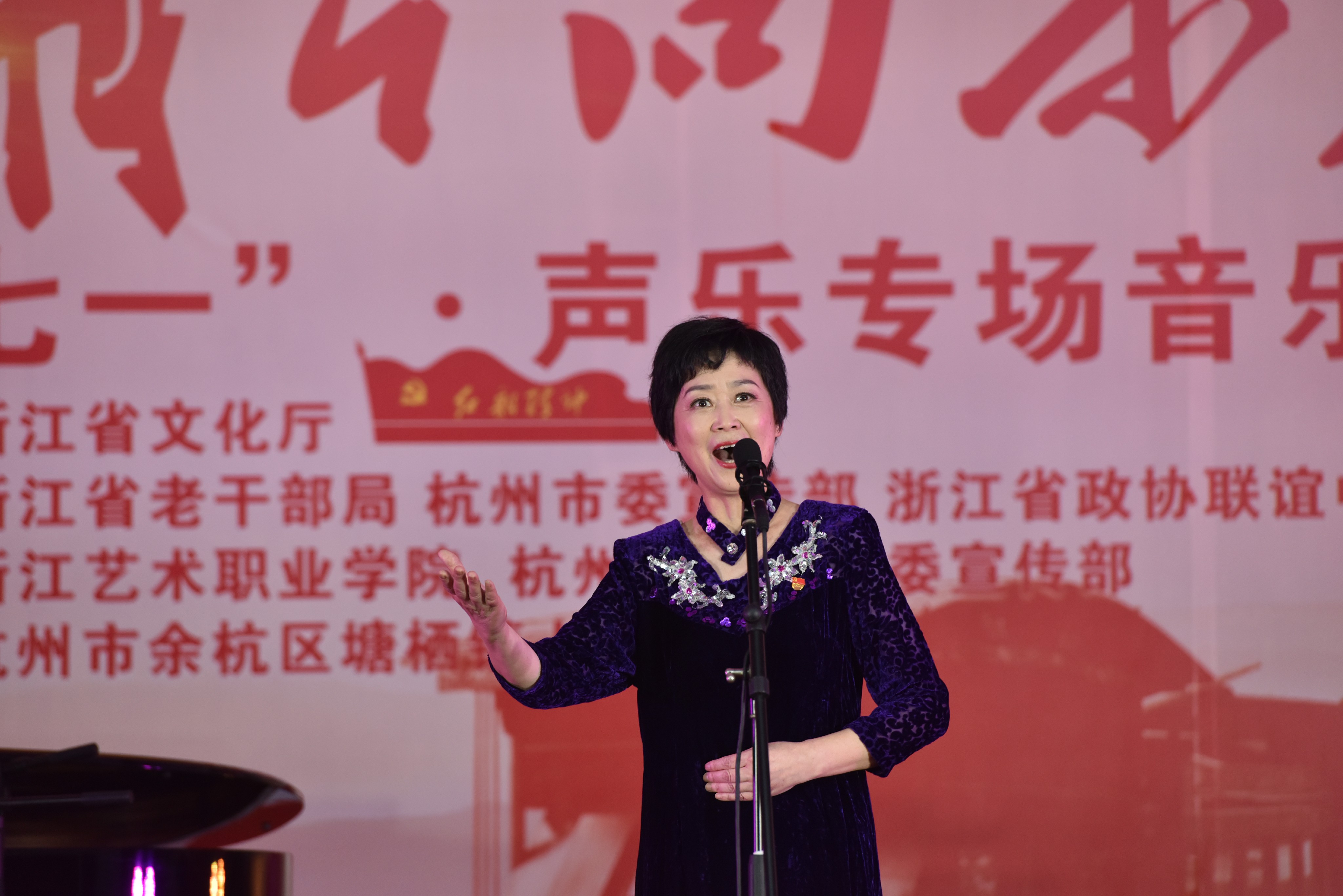 6月23日,为迎接建党97周年,由浙江省文化厅主办,省委老干部局、杭州市委宣传部、省政协联谊中心支持,浙江艺术职业学院、杭州市余杭区委宣传部、塘栖镇人民政府承办的“红船向未来——迎七一声乐专场音乐会”主题党日活动在余杭区塘栖镇塘栖村文化礼堂举行。省人大常委会党组书记、副主任梁黎明,杭州市人大常委会主任于跃敏,省委宣传部常务副部长来颖杰,省委组织部副部长、省委老干部局局长鲍秀英,省文化厅党组书记、厅长褚子育,浙江艺术职业学院党委书记朱海闵、副院长沈恒、音乐系系主任郭义江等出席。来自省直系统有关单位的党员干部、杭州市及余杭区有关领导在现场与村民们一起聆听了这场音乐会。