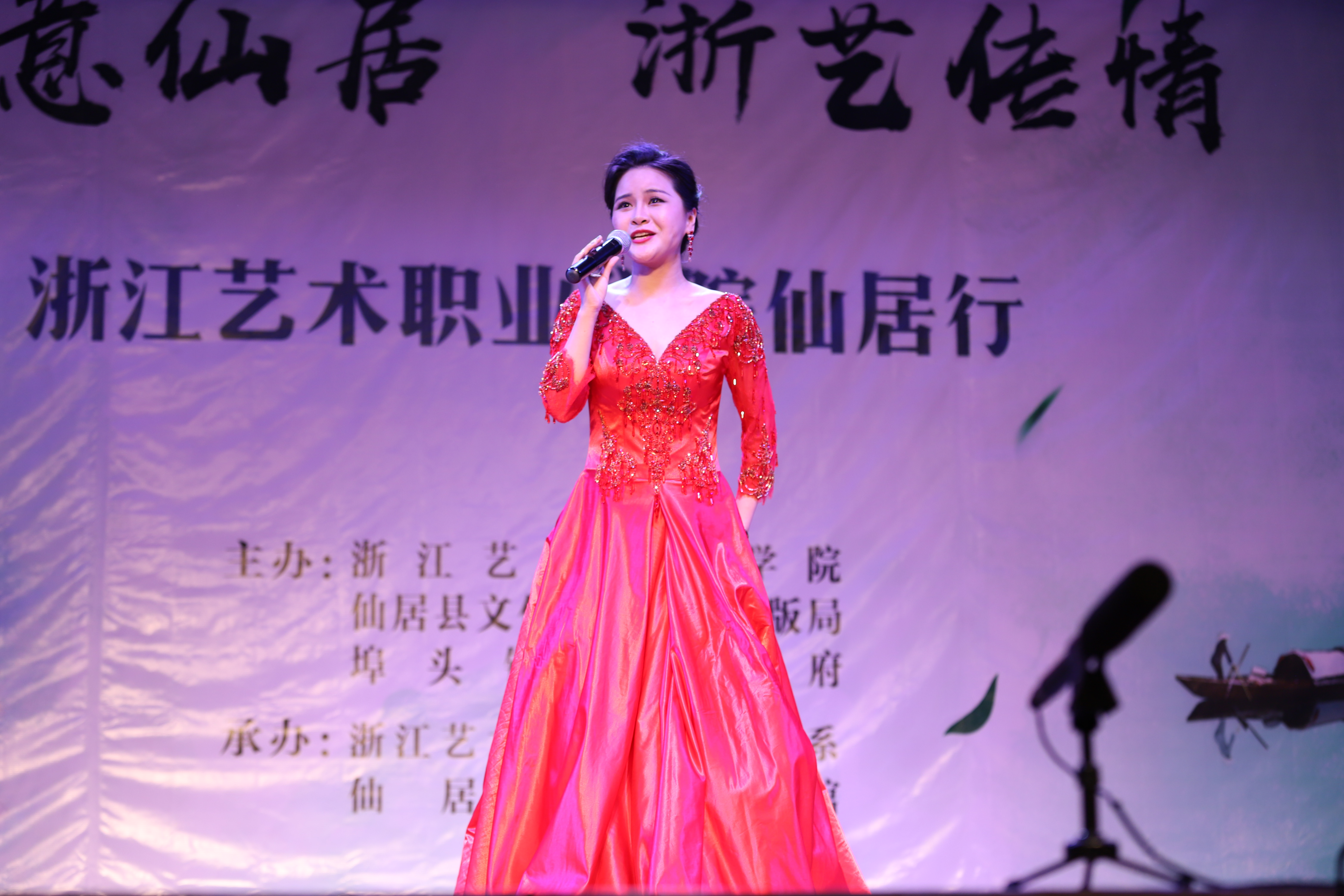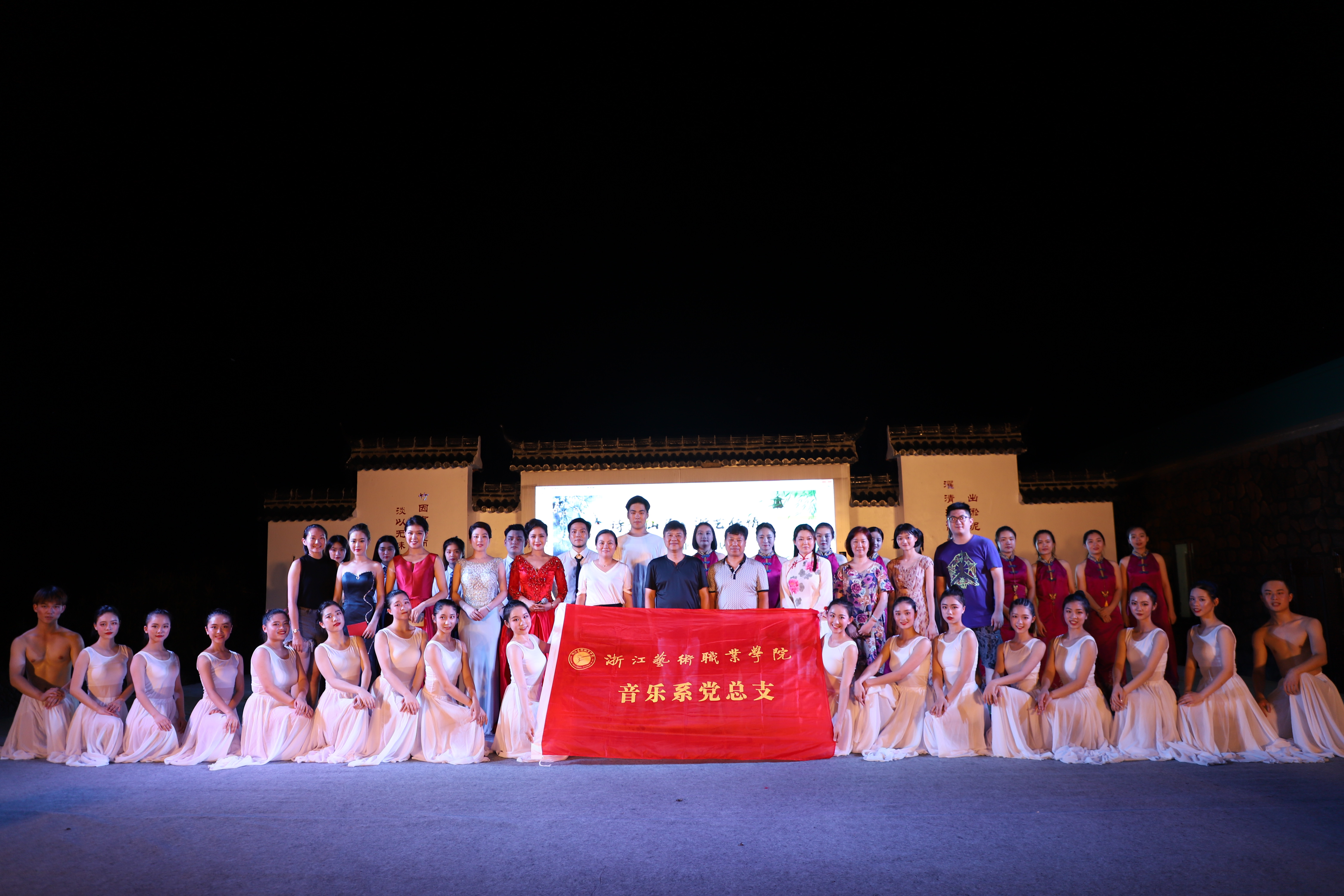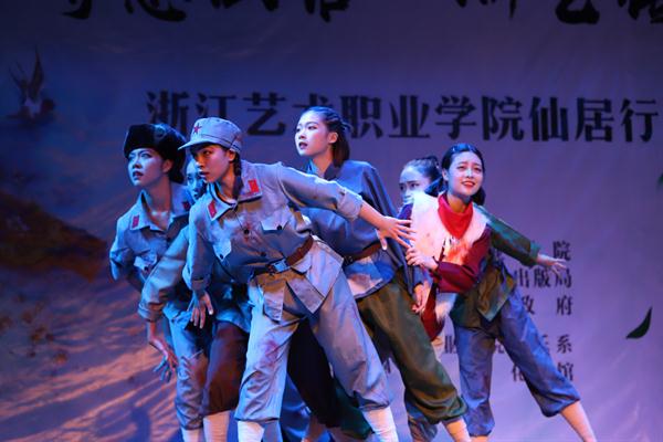 授牌仪式后,浙艺师生为当地群众作了精彩演出。由古筝、扬琴、中软、琵琶等民族传统乐器组成的弹拨乐重奏《鲁腔》拉开了晚会的序幕,笛子独奏《牧民新歌》富含田园气息,阿卡贝拉《小九妹》表演形式令村民们耳目一新,群舞《八女投江》演绎了革命烈士的英勇无畏,萨克斯独奏《此情不移》旋律悠扬,女声独唱《芦花》声声动人,《流行舞串烧》和群舞《不想说再见》青春洋溢,古筝独奏《西部主题畅想曲》仿佛将观众带回了古时的西域,演出在女声独唱《中国进入新时代》中落下了帷幕。整台节目丰富多彩,村民们赞叹不已,更有村民说:“浙艺真是全省文艺人才的‘黄埔军校’啊”!当晚演出进行了现场直播,点击量达12.3万人次。次日晚,浙艺师生在仙居县淡竹乡下叶村再次进行专场演出。
