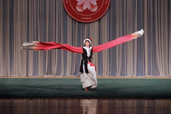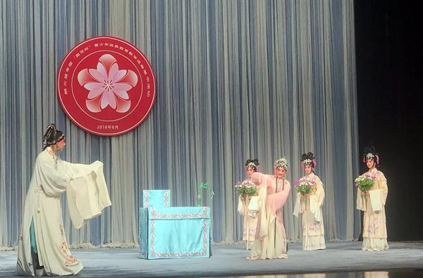 由文化和旅游部主办、文化和旅游部文化科技司和中国戏曲学院承办的第三届全国“梨花杯”青少年戏曲教育教学成果展示活动进行到第三天,继《情探·行路》演出后,浙江艺术职业学院戏剧系学生在21日、22日两天连续上演绍剧《女吊》、昆剧《通天犀》《牡丹亭·惊梦》、越剧《梁祝·回十八》。一所艺术院校的学生连续展示三大剧种,令观众啧啧称赞。
