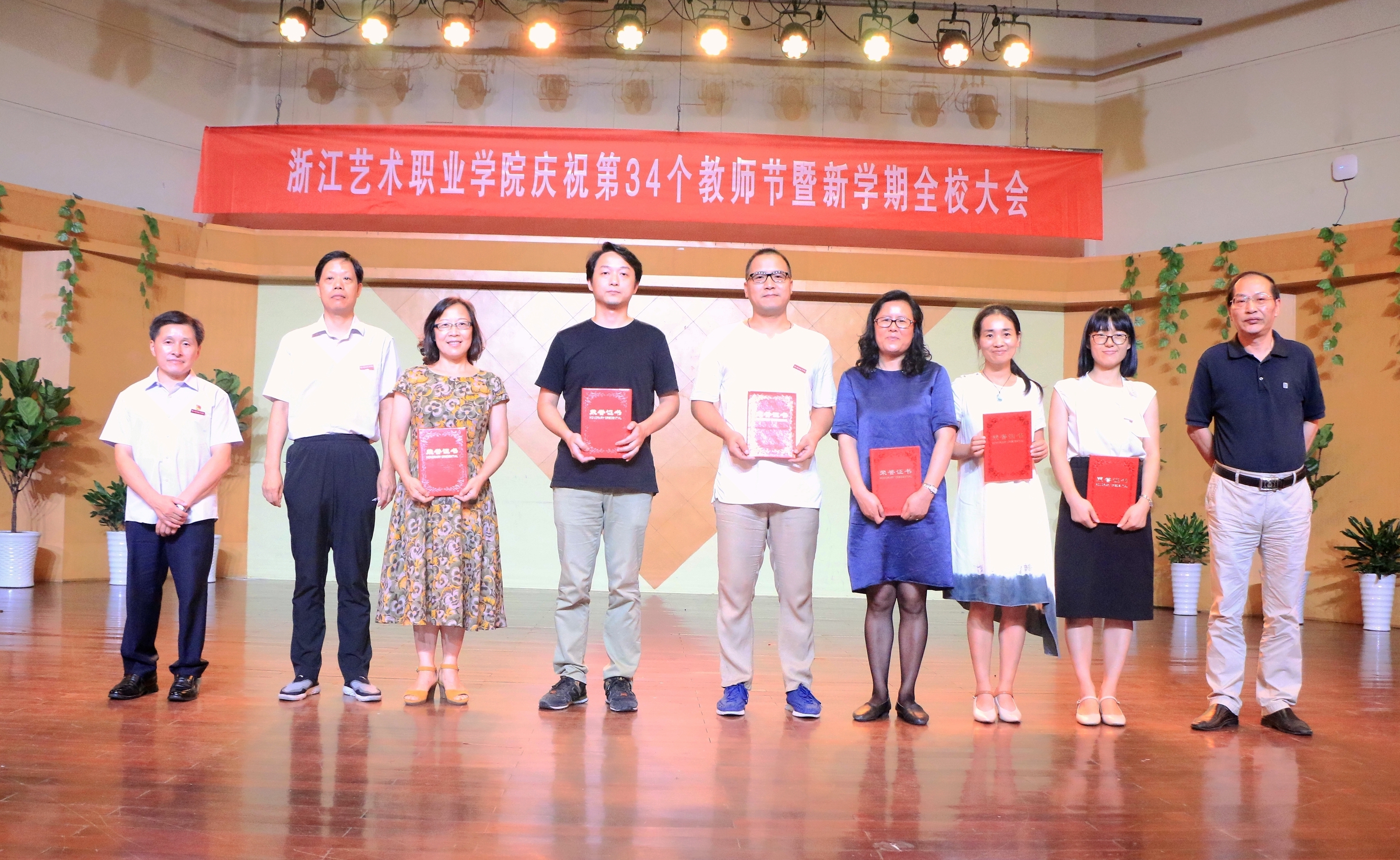 9月19日下午,浙江艺术职业学院庆祝第34个教师节大会暨新学期全校大会在音乐厅举行。校领导朱海闵、黄杭娟、夏开堂、章轲、沈恒、徐芳、沈军甫、王涛、马向东出席,全院教职工参加大会。党委副书记夏开堂主持大会,他代表校党委领导班子向过去一年来在各个岗位上辛勤工作、默默付出,为学校发展和学生成长成才做出不懈努力的全体教职工送上亲切的问候和诚挚的感谢。