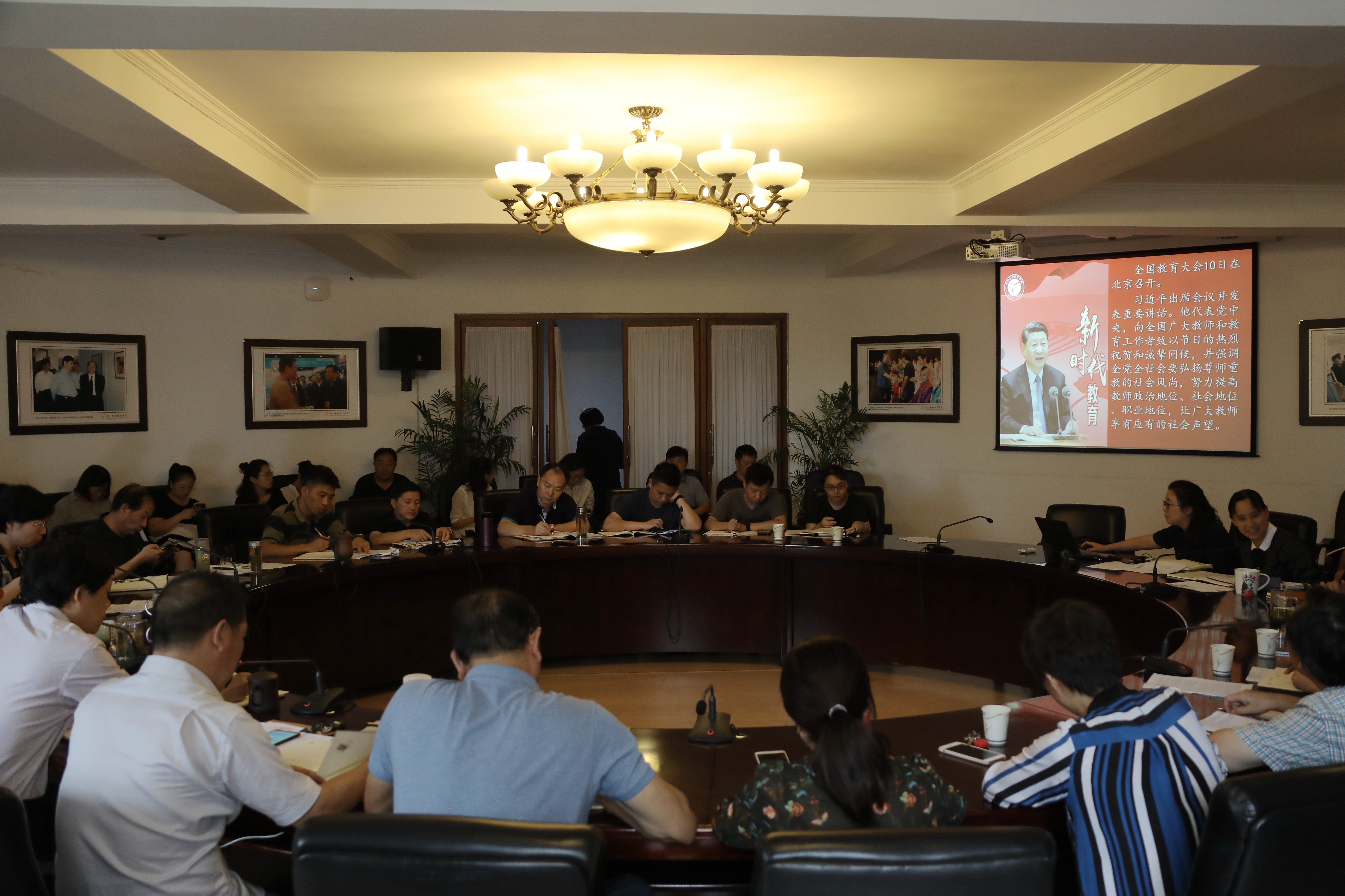 “教育是国之大计、党之大计”“培养什么人,是教育的首要问题”“发扬爱国为民、崇德尚艺的优良传统,以大爱之心育莘莘学子,以大美之艺绘传世之作,努力把学院办成培养社会主义建设者和接班人的摇篮”……9月12日下午,浙江艺术职业学院召开2018年党委理论学习中心组第18次扩大学习会,专题学习习近平总书记全国教育大会重要讲话精神和给中央美术学院老教授重要回信精神。校党委班子成员、副处以上干部、思政理论课教师等近70人参加学习。党委书记朱海闵主持学习会。