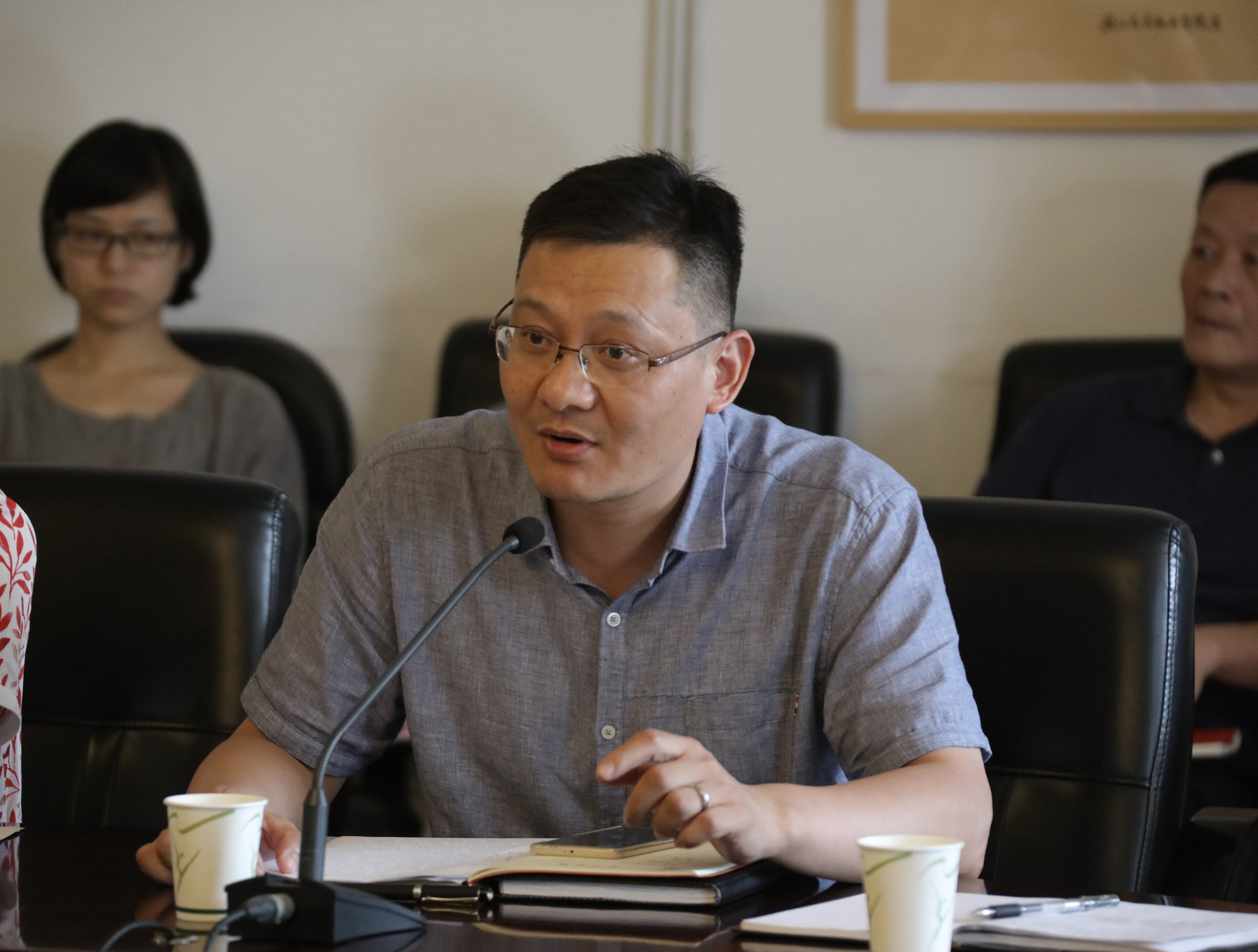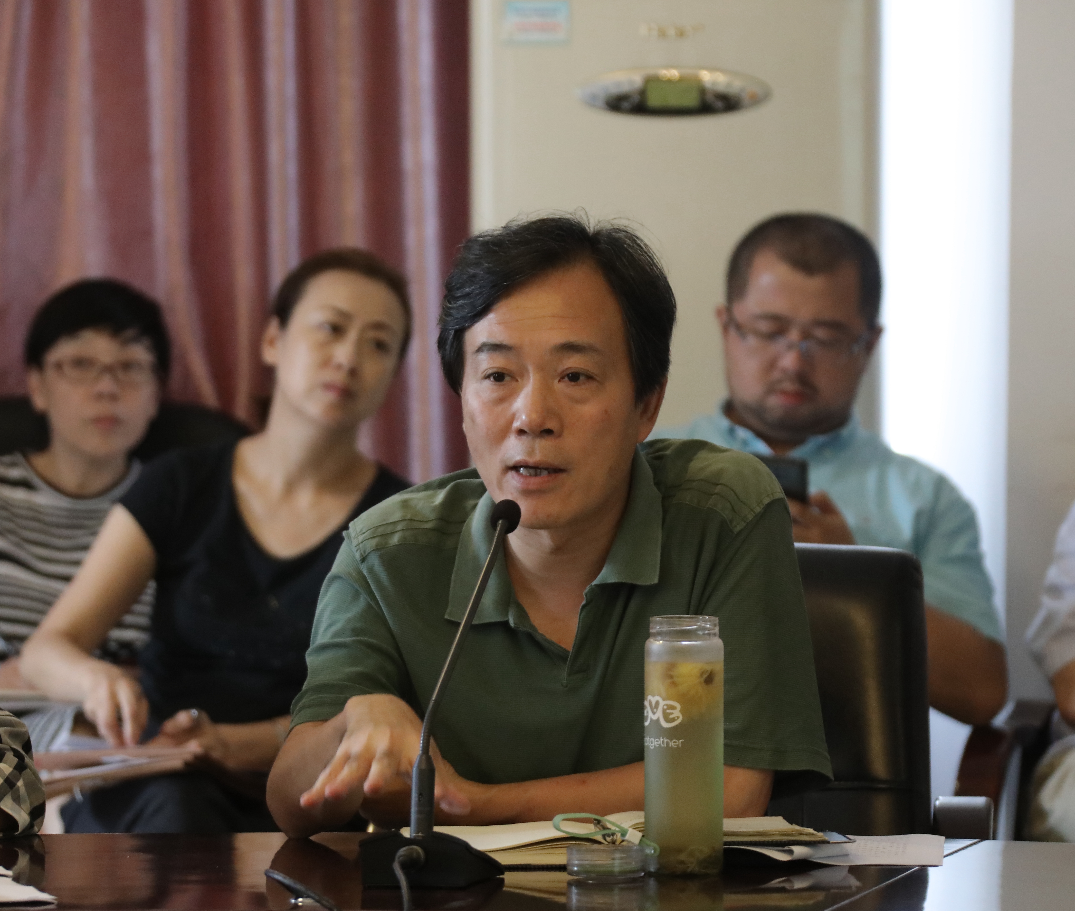 会上,党委班子成员夏开堂、章轲、沈恒、徐芳、沈军甫、王涛、马向东,教务处副处长(主持工作)周应中、社科部负责人刘秀峰、美术系党总支副书记、副主任孙煜珑等结合立德树人、美育教育、思政理论课主渠道作用、课程思政、艺术职业院校的机遇、使命和担当等畅谈学习体会和感悟。