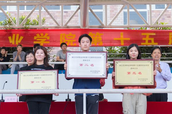 院长黄杭娟宣布本届运动会成绩。戏剧系以175分的总成绩夺得团体赛桂冠,紧随其后的是获得170分总成绩的舞蹈系,影视技术系获得第三名。另外,影视技术系和舞蹈系取得体育道德风尚奖,音乐系和美术系获得集体协作奖,舞蹈系获得开幕式突出贡献奖,音乐系取得团体操特别表演奖。在女子4*100米决赛中,戏剧系以54秒52、舞蹈系以55秒84的成绩打破了校运会58秒84的记录;在男子4*100米决赛中,音乐系以46秒09的成绩打破49秒52的校运会记录;在男子4*250米决赛中,影视技术系以2分18秒15的成绩打破了2分18秒84的校运会记录,创造了三项新的校运会纪录。