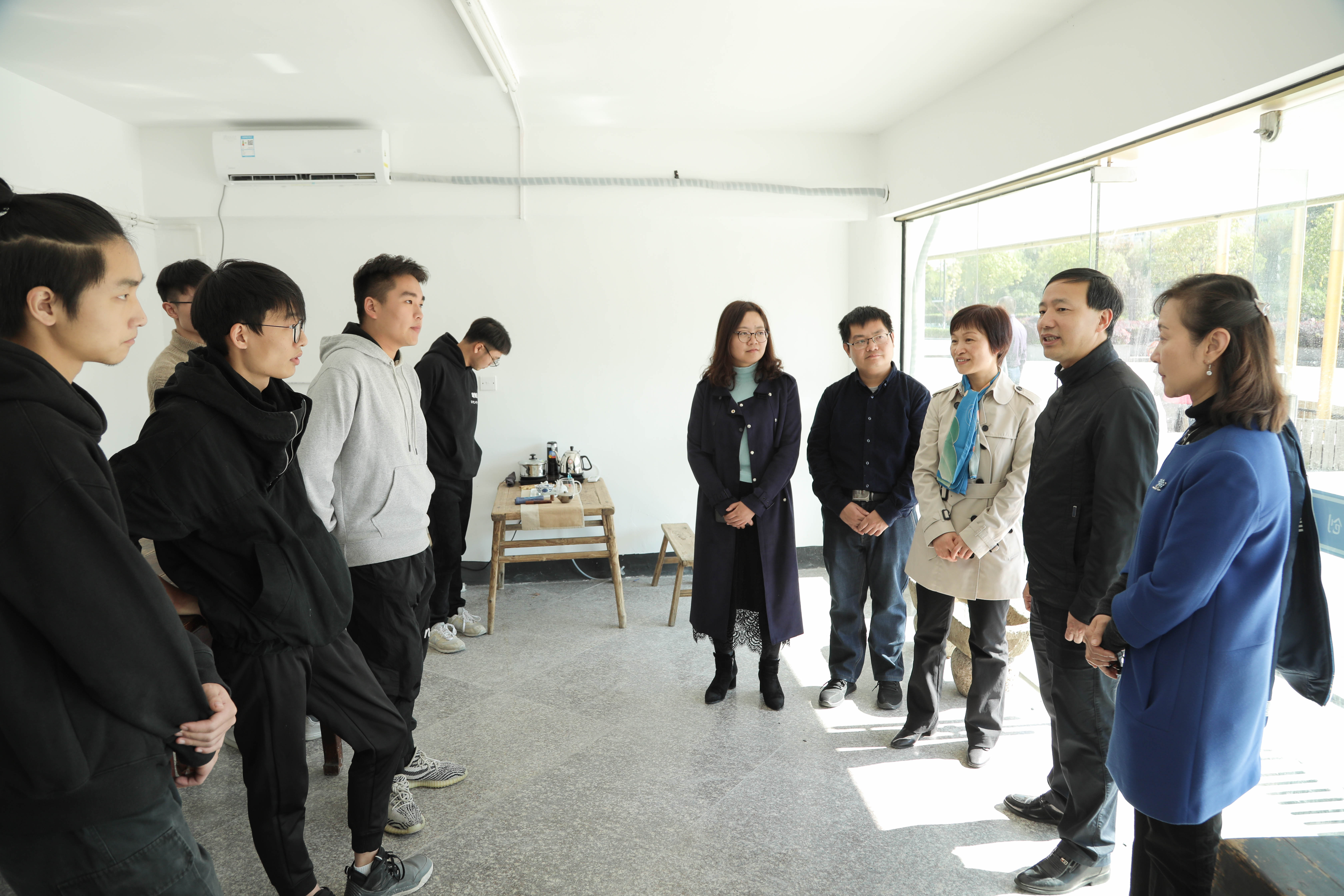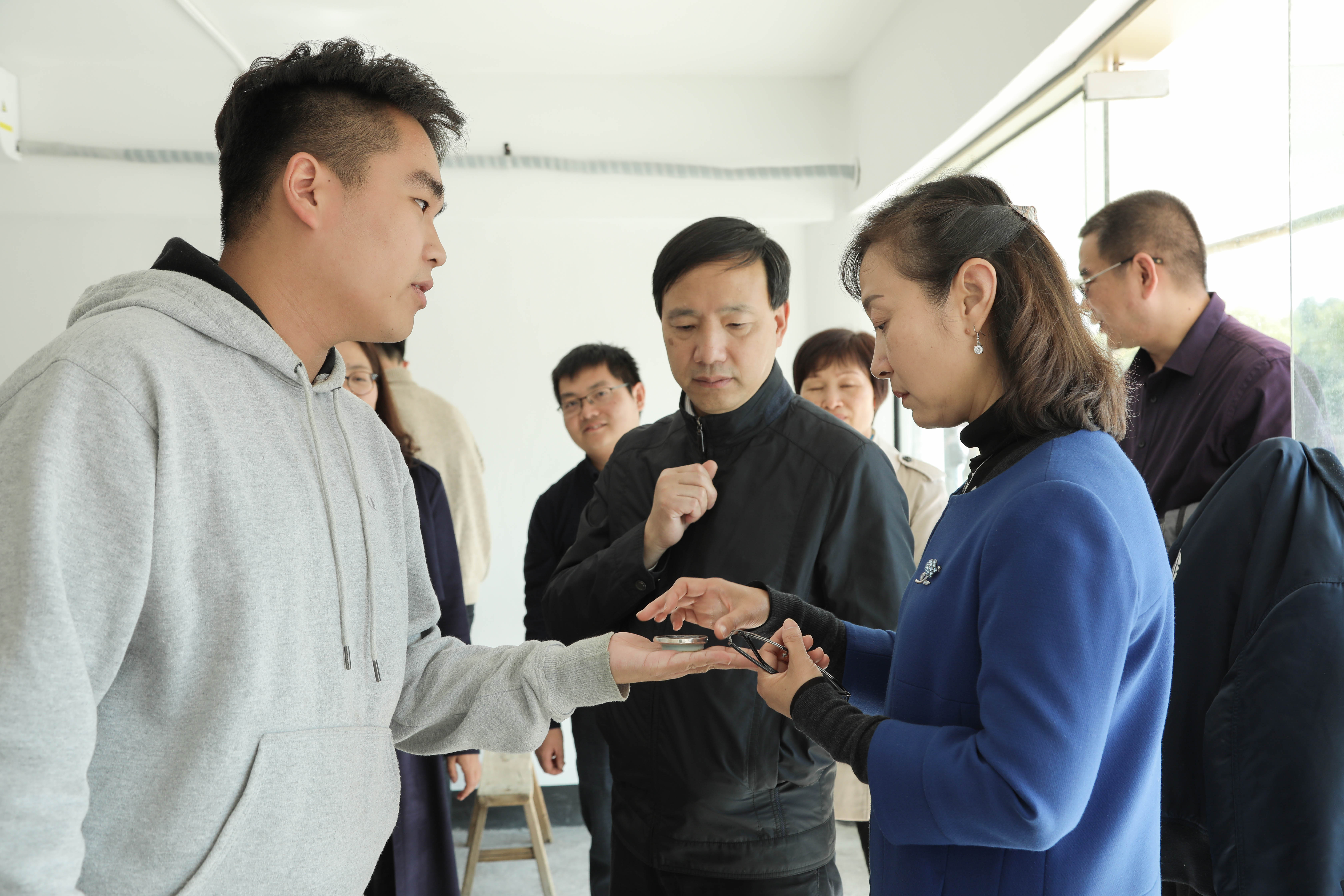 仪式结束后,参与活动的领导、老师们参观了首批入园的“勇敢的心”编剧工作室、未孤工作室、志新影视、聚五部落文化传媒工作室、ONG文创工作室、风艺演艺工作室、传统文化“越”·戏曲体验馆7个创业项目的展陈,并参与项目体验。