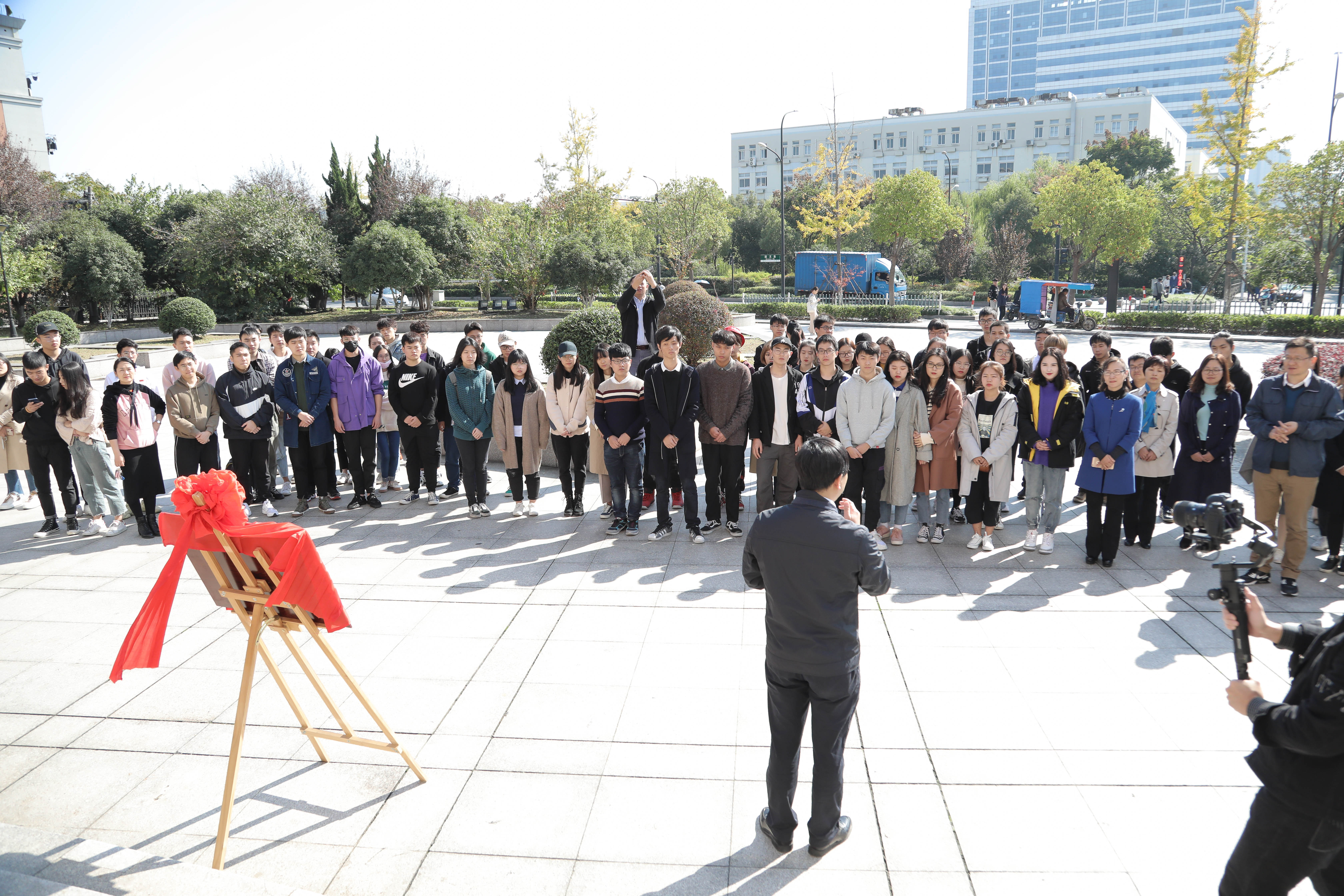 夏开堂致辞。他表示,大学生创业孵化园是学院为对创业感兴趣的、能力突出的毕业班同学提供的一个平台,是在国家倡导的大众创业、万众创新的背景下,以系为单位创建的,目的在于培养学生专业特色能力,提升我院学生创业、就业水平,希望今后这个平台能够不断充实壮大。影视技术系17摄影摄像班李金星同学代表首批入园的创业项目团队学生进行创业发言。黄杭娟、夏开堂共同为浙江艺术职业学院大学生创业孵化园揭幕,宣布开园。