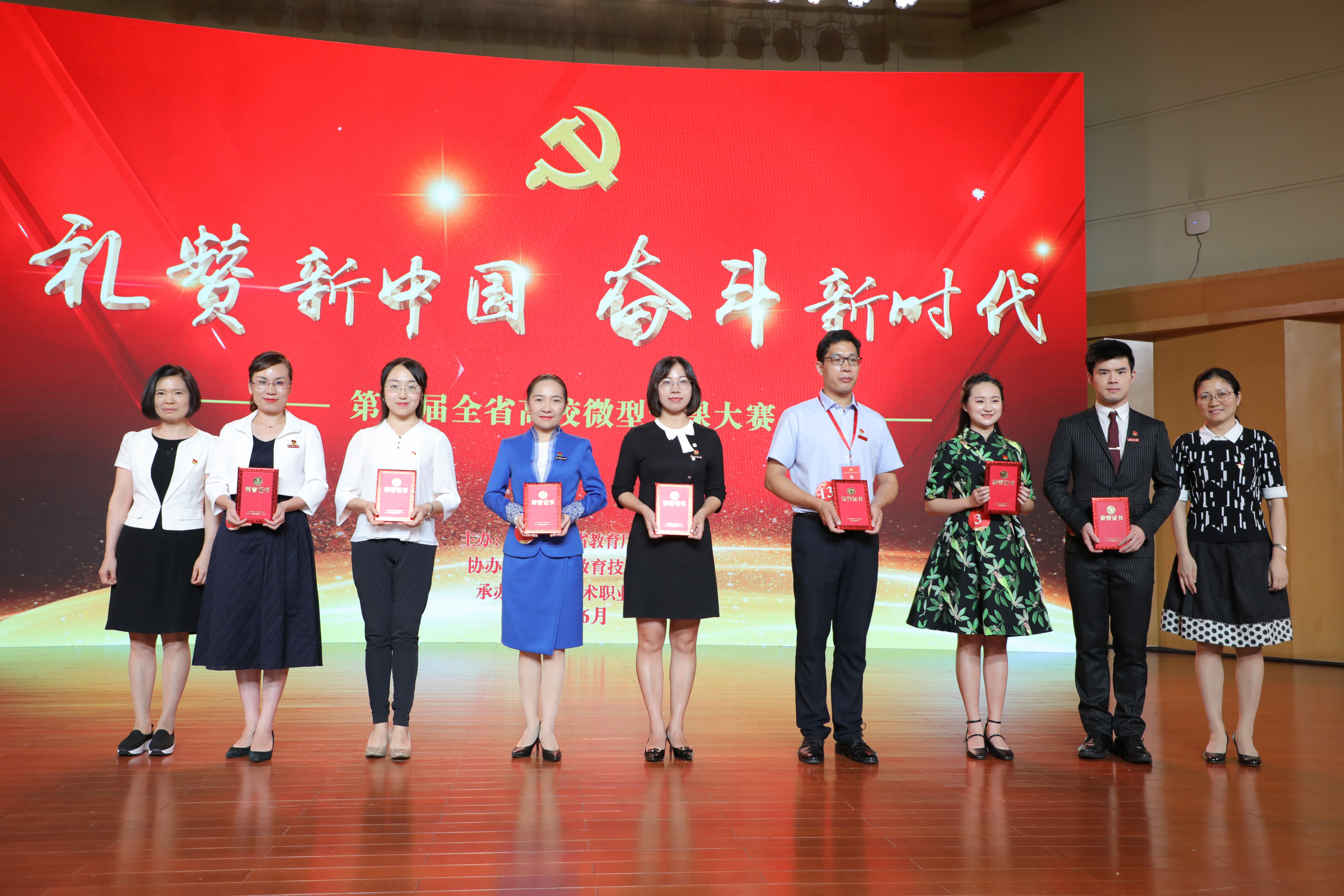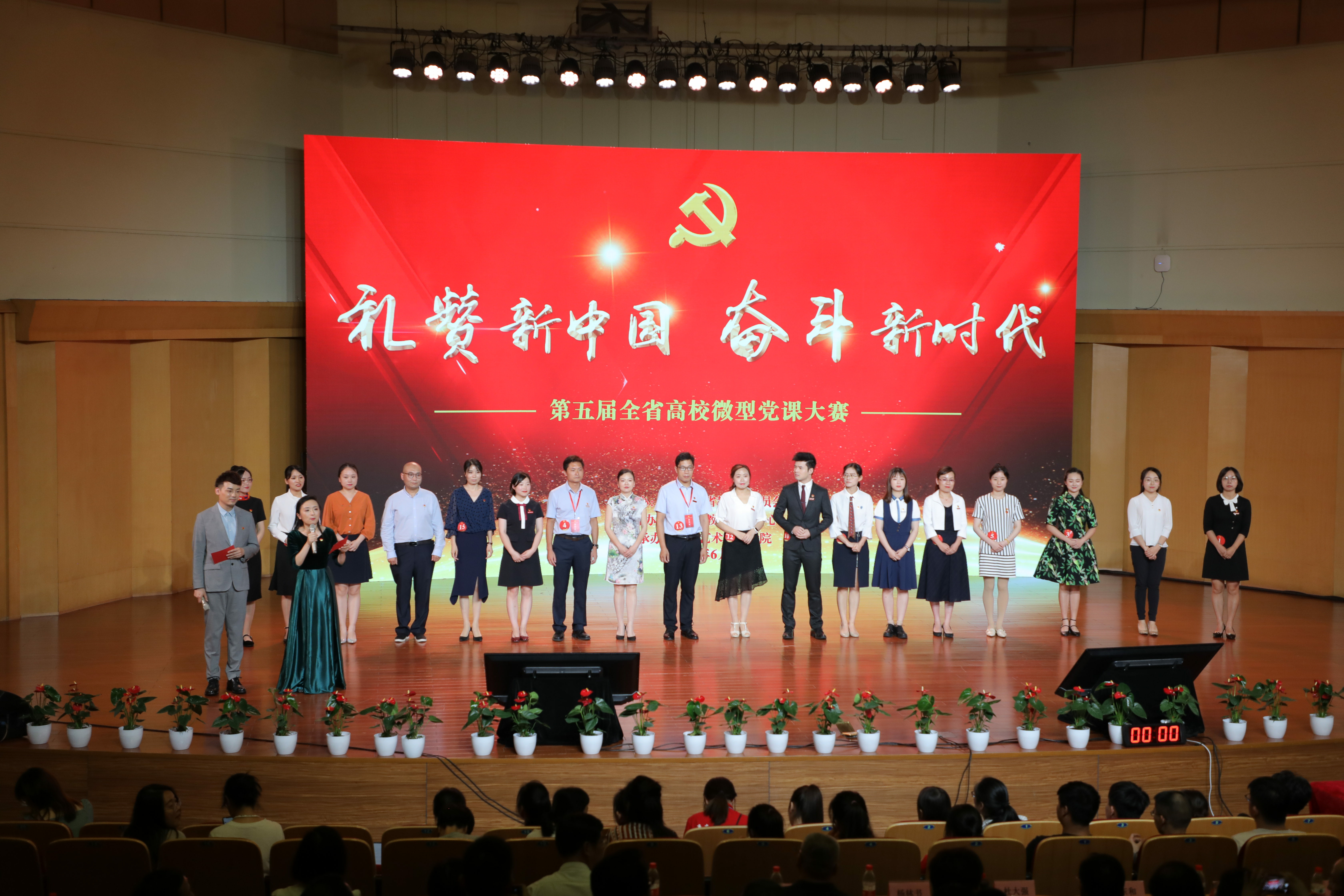 6月10日下午,以“礼赞新中国,奋斗新时代”为主题,第五届全省高校微型党课大赛决赛在浙江艺术职业学院举行。大赛由中共浙江省教育厅委员会主办,浙江省教育技术中心协办,浙江艺术职业学院承办。省教育厅党委副书记干武东、省教育厅党委委员、组织处处长应方彩,浙江艺术职业学院党委书记朱海闵等出席。来自全省高校党员师生代表近400人现场观看了比赛。