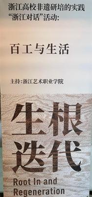 由文化和旅游部非遗司、浙江省文化和旅游厅指导,中国美术学院主办,中国美术学院手工艺术学院、浙江理工大学纺织科学与工程学院(国际丝绸学院)、浙江师范大学文化创意与传播学院、浙江农林大学文法学院、浙江艺术职业学院继续教育学院和文化管理系、中国美术学院民艺博物馆联合承办的“生根·迭代——浙江高校非遗研培的实践‘浙江对话’”(以下简称“浙江对话”)于9月5日在中国美术学院民艺博物馆启幕,9月6日,“对话”在5个分会场同步“开启”,5所高校分别就“手艺与跨界、工艺与产业、民艺与市场、手工与科技、百工与生活”5个议题展开热烈讨论与交流,从高校非遗研培的视角探讨传统文化的“生根·迭代”。