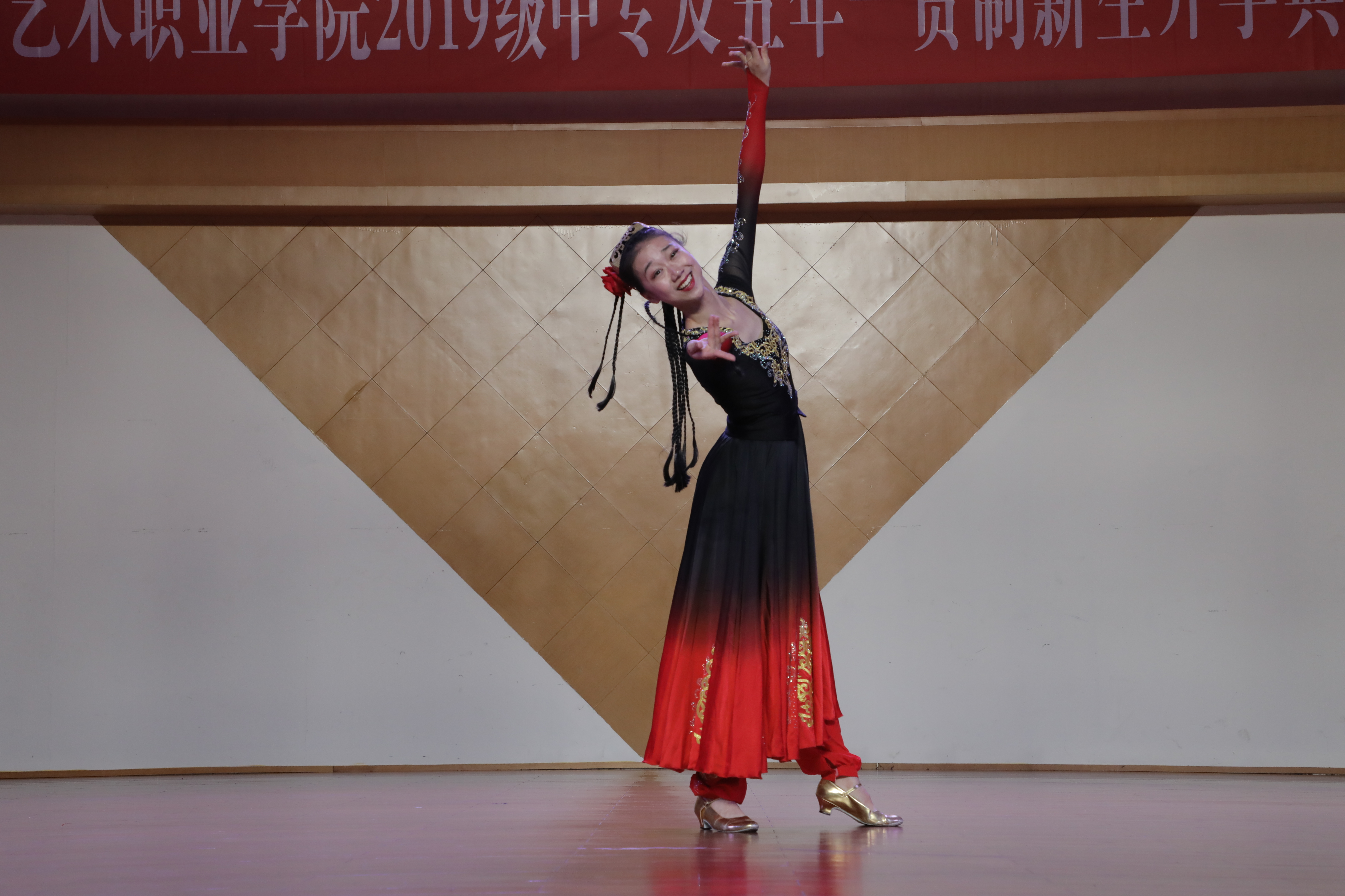 刚参加完第12届全国“桃李杯”舞蹈教育教学成果展示活动的2014级中国舞班欧贝尔为学弟学妹们现场展示维族舞技巧组合,优美的舞姿赢得现场阵阵掌声。