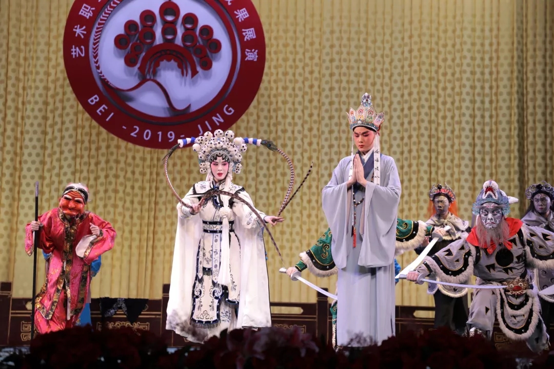 11月7日晚,浙江艺术职业学院创排的绍剧《孙悟空怒打白骨精》和越剧《红色浪漫·诀别》在北京长安大戏院上演,为首都观众和兄弟院校师生带来了一场浙江本土戏曲文化的盛宴。当晚亮相的节目还有绍兴艺术学校的绍剧《樊梨花》、浙江音乐学院的越剧《牡丹亭·幽媾》、金华艺术学校的婺剧《断桥》等,这是由中国艺术职业教育学会主办,北京戏曲艺术职业学院、中国艺术职业教育学会戏曲专业委员会承办的“百戏百校——艺术职业教育戏曲教学成果展演”活动的第7场演出,现场叫好声连连。