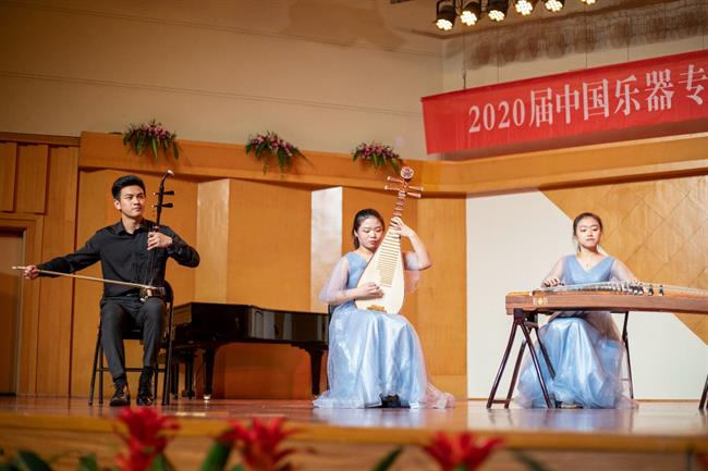 12月6日晚,2020届音乐表演专业中国乐器方向毕业生专场音乐会在音乐厅举行。二胡、古筝、琵琶、扬琴……这些古典乐器在毕业生们的妙手下,演奏出优美的乐曲。