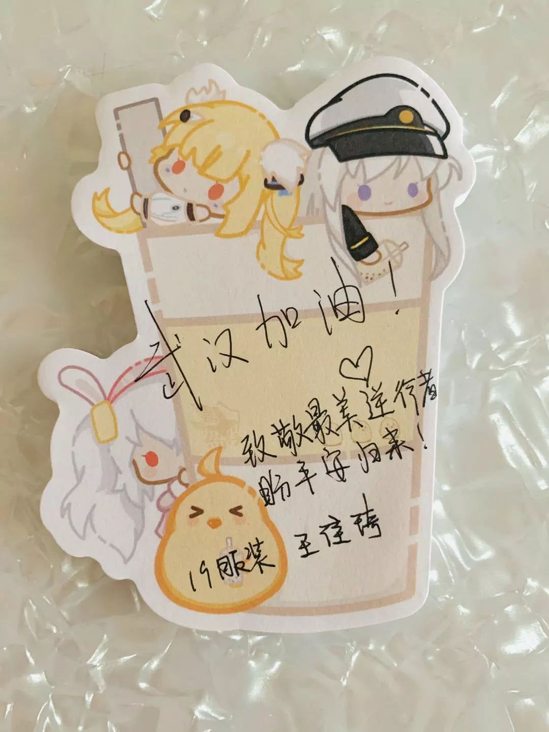 我们都有一个共同的名字叫中国,全国人民永远与你们同在,武汉经历过洪水,经历过暴雪,都扛了过来,这次也一定会赢!加油,白衣天使们!加油,武汉!