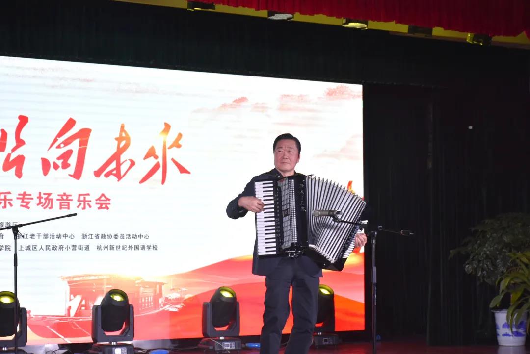 小组唱《红船向未来》拉开了整场音乐会的序幕,《咏梅》《毛主席的话儿记心上》《沁园春·雪》《我和我的祖国》等一首首脍炙人口的红色歌曲带领整场观众重温党的光辉历程,致敬峥嵘岁月,憧憬美好未来。原创作品《我们是荆门》唱出了浙江和湖北荆门携手抗击疫情的深厚情谊和坚定信心。省政协社法委原主任尚清,笛子演奏家、浙江艺术职业学院音乐系主任、教授吴樟华,杭州市建兰中学艺术教师张敏、学生姜茗轲,杭州新世纪外国语学校陈航,学校小营街道拾锦年华艺术团等同志作为助演嘉宾参与演出。
