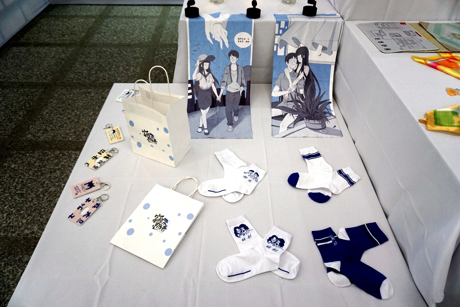 我们也将IP形象应用在一系列的衍生品上,如胶带、徽章、格裙、手机壳等,创作出了边村所独有的文创产品,借放在当地的网红小卖部,方便游客购买。