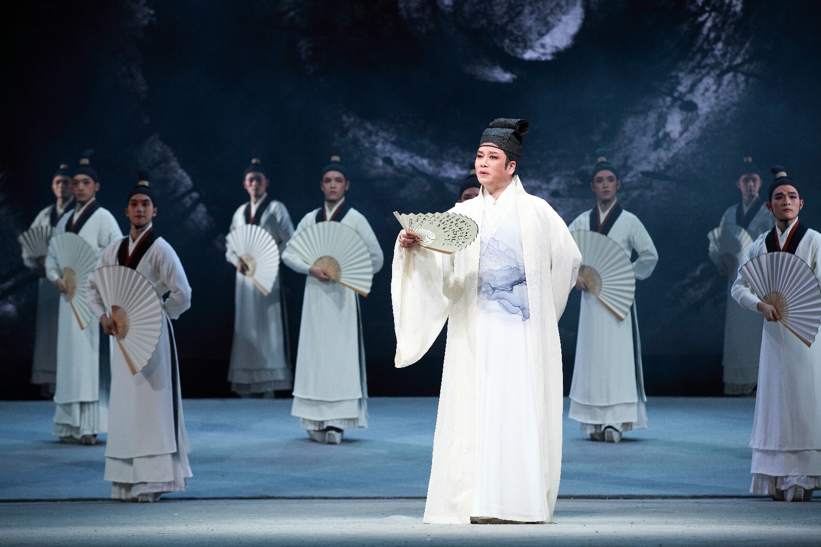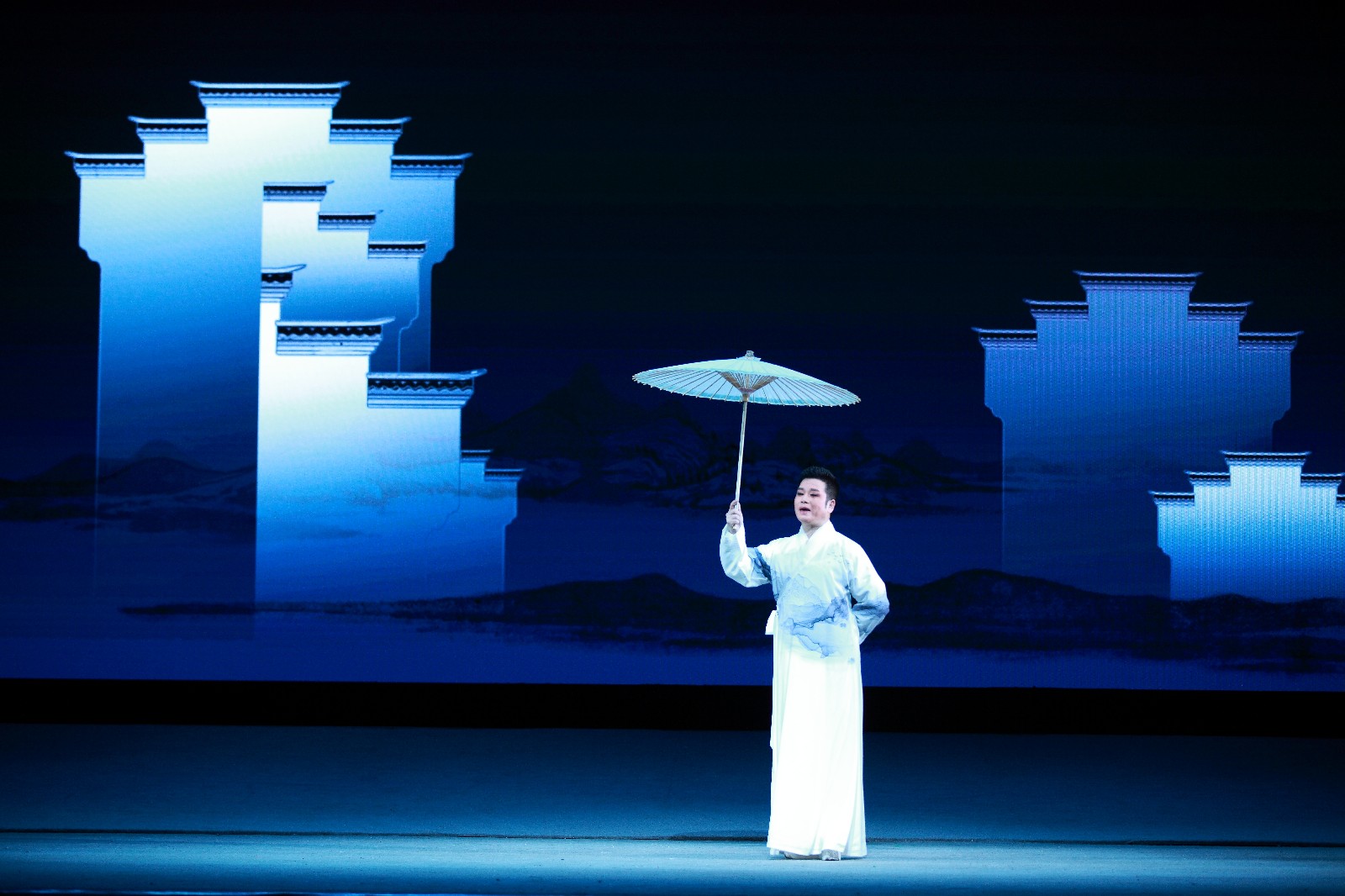 当晚演出《诗路行吟》诗画浙江戏曲雅集,由浙江省文化和旅游厅出品,浙江艺术职业学院联手浙江戏曲产教联盟主办,分《吾心求索》《诗气东来》《戏从民生》《天地共鸣》《与君山水》五个篇章。