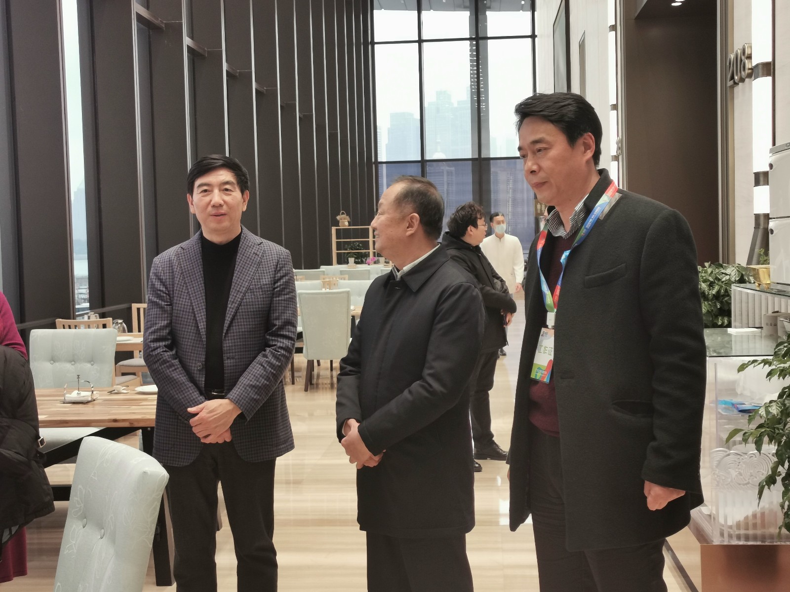 27日下午,在走台、联排间隙,中国艺术职业教育学会会长李力在沈诚陪同下来后台看望我校演出人员,李力说,“浙江艺术职业学院作为全国‘双高’院校,是全国艺术职业学院的旗帜、领头兵。我听说你们这次来青岛克服了很多困难,但能够为艺博会献演,足以说明你们的艺术水平和教学水平。希望你们继续发挥‘双高’院校优势,带头推进整个艺术职业教育的发展。”沈诚也对我校在疫情期间、在音乐系民乐专场巡演间隙,能够赶赴青岛参演表示感谢和赞许。