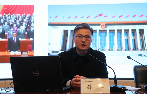 会上,党委书记薛亮传达2021年全国两会基本情况,对学校贯彻落实两会精神提出明确要求。他表示,今年全国两会是在“两个百年”交汇的重要历史节点召开的两会,是在我们党迎来建党100周年的历史时刻召开的两会,是在“十四五”规划开局之年和全面建设社会主义现代化国家新征程起步之年召开的一次十分重要的会议。会议坚持以习近平新时代中国特色社会主义思想为指导,审议决定了一系列重大事项,取得了一系列丰硕成果。习近平总书记在全国两会期间参加内蒙古代表团审议、青海代表团审议、解放军和武警部队代表团全体会议和看望参加政协会议的医药卫生界教育界委员的重要讲话精神,对于进一步统一思想、坚定信心、凝聚力量,扎实做好当前和今后一个时期的各项工作提供了根本遵循。