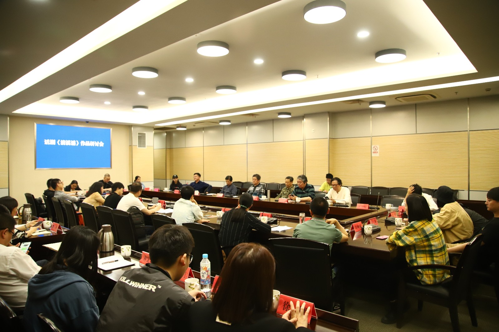 5月22日上午,《清溪谣》研讨会在长兴举行,与会专家纷纷赞扬演出效果超额完成了学校的创作任务。中国田汉研究会会长周光为《清溪谣》首演成功点赞。他希望《清溪谣》能够发展得越来越好,未来走上更大更广的舞台,让更多人看到。浙江省文化和旅游厅首届专家委员会委员、浙江省戏剧家协会顾问周冠均,对《清溪谣》首演将革命主题与革命历史发生地完美融合的形式给予了高度评价。他说,首演活动策划、运作非常成功,不论是老师还是学生,对这场演出都注入了无尽热血。同时提出建议,如果增加剧中人物心理层次的表演,人物形象将会更加鲜明生动。沈勇、倪东海、王鲁杭、叶志良、朱为总等专家也纷纷肯定演出成功,并为后续修改提出了宝贵意见。共同主办《清溪谣》首演开幕式的长兴地方代表长兴县委宣传部副部长、县文联主席刘月琴,县融媒体中心党委委员、总编辑王晓伟,长兴文旅集团总经理魏燕等长兴相关单位领导出席了研讨会。