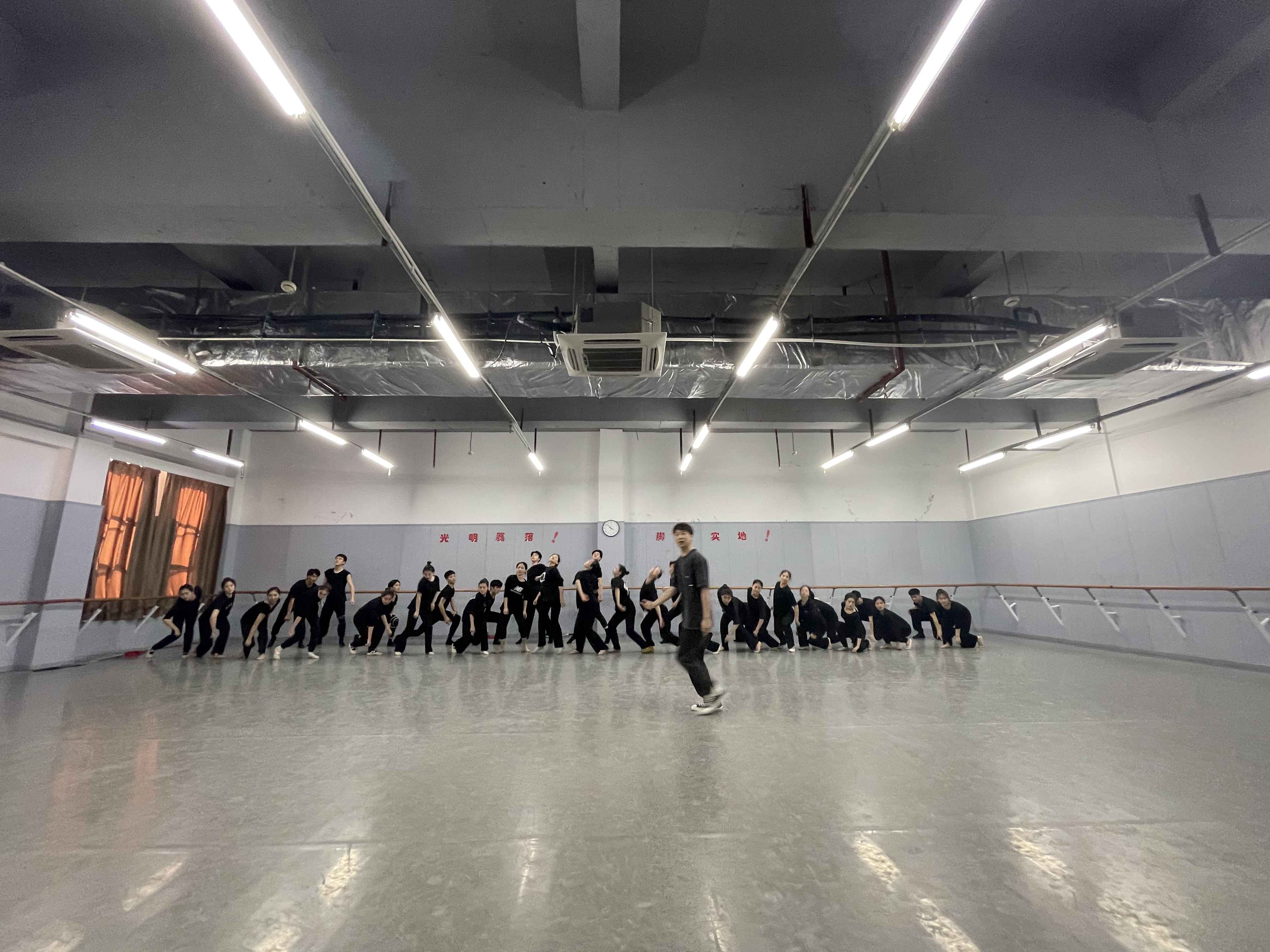5月15日,舞蹈系主任张星与本次晚会总导演施国庆老师进行沟通协调,及时解决了体育馆空调问题,保证了排练顺利进行。数日来,舞蹈系的教务老师、任课老师和几个班的班主任积极配合,协商调整上课时间。教学实践部焦峤等老师多次联络工作到深夜;浙艺车队的王磊等司机师傅起早贪黑争分夺秒的运送师生队伍;舞蹈系学生们团队意识强和组织纪律性强的特点在本次排练中得以表现,他们排练认真卖力,每天自觉统一排练服装,步调一致,保证了排练的高效率、高质量,有时还会反过来关照到老师们的辛苦,暗暗地为老师准备茶水。