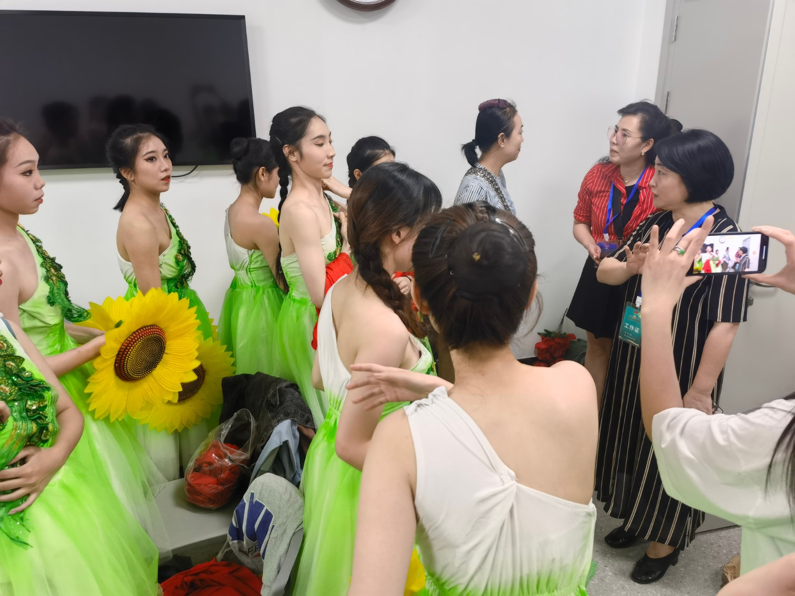今晚,浙江省庆祝中国共产党成立100周年文艺演出、大型交响诗画《百年红船 扬帆远航》,将在黄龙体育中心体育馆上演。浙江艺术职业学院参与演出的200多人大部队进场排练近半个月后,6月26日下午,学校党委委员、副院长支涛率音乐系党总支书记、主任吴樟华,舞蹈系主任张星,教学实践部主任陈芬芳等前往现场看望浙艺师生,叮嘱他们在这场重大演出中发挥最好专业水准,拿出最完美舞台呈现,以饱满的激情歌颂伟大的党,为庆贺建党百年献上自己一份力量。
