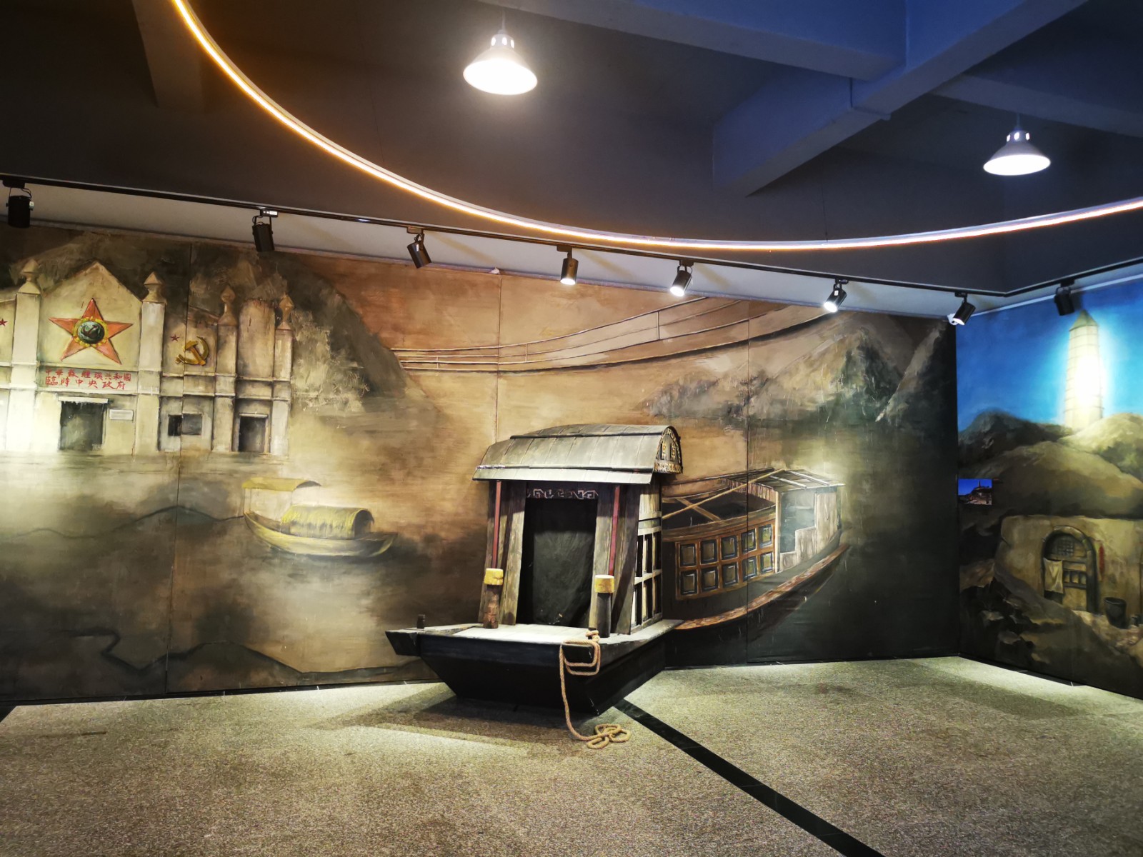 本次展览由美术系承办,是学校庆祝中国共产党百年华诞主要活动之一。整个展览分为“开天辟地”“改天换地”“翻天覆地”“惊天动地”四大篇章,涵盖了美术系舞台艺术设计与制作专业、服装与服饰设计专业、广告艺术设计专业、动漫设计专业及环境艺术设计专业等五个展示板块的美术作品。舞台艺术设计与制作专业展示板块以绘景的形式生动地展现了“中共一大会址”、“嘉兴南湖红船”和“革命圣地延安宝塔山”三个重要的历史地点与场景;服装与服饰设计专业展示板块结合专业教学开展《清溪谣》《黎明前的诀别》等剧目的服装服饰设计,以舞台服装实物进行呈现;广告艺术设计专业展示板块主要展出反映新时代新风貌的主题海报;动漫设计专业展示板块运用插画栩栩如生地再现了改革开放时期20位改革先锋人物;环境艺术设计专业展示板块通过资料查找和模型搭建等程序,等比例缩放手工制作了天安门及人民大会堂的实物模型。